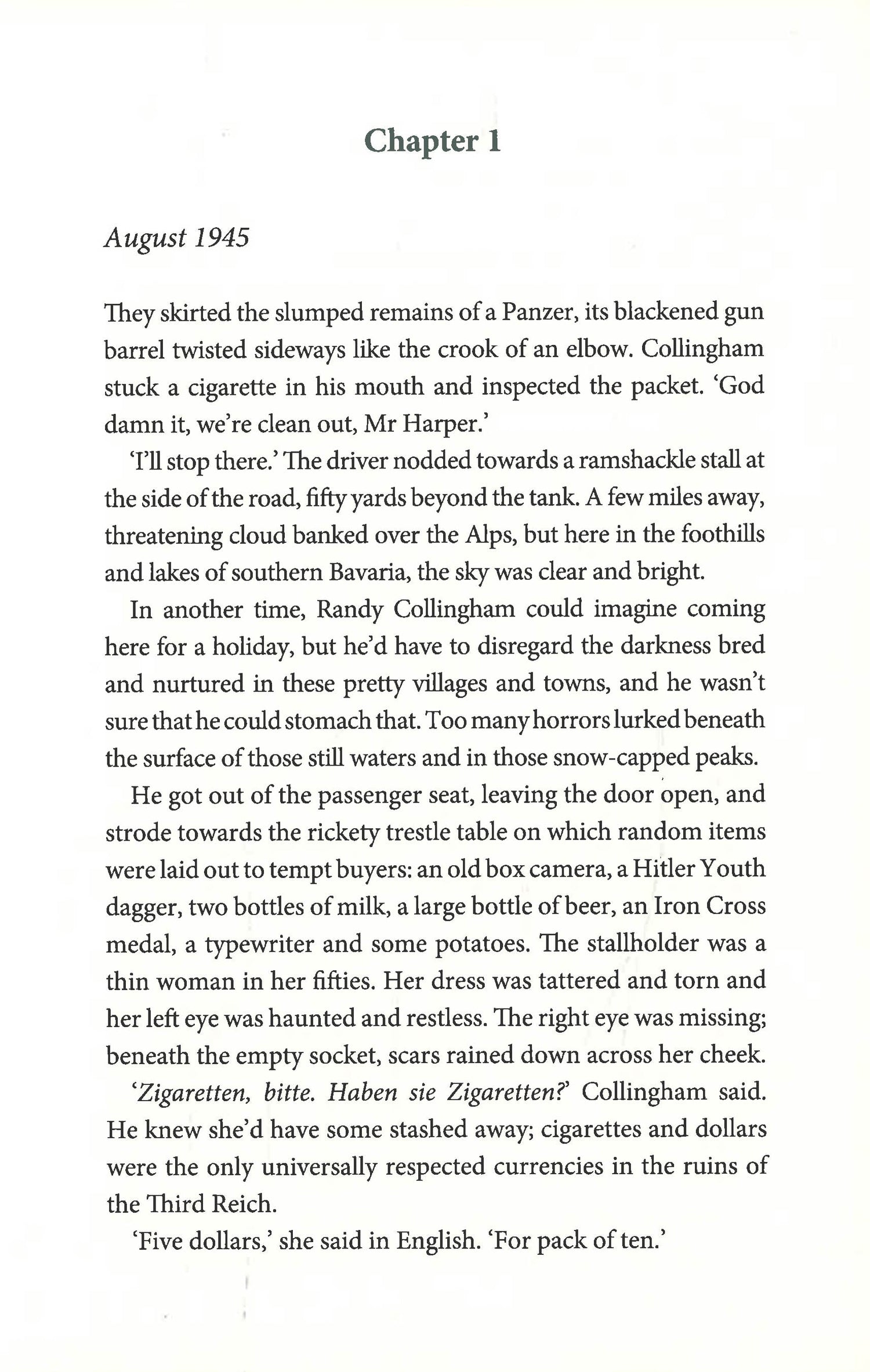 Germany, late summer 1945 - The war is over but the country is in ruins. Millions of refugees and holocaust survivors strive to rebuild their lives in displaced persons camps. Millions of German soldiers and SS men are held captive in primitive conditions in open-air detention centres. Everywhere, civilians are desperate for food and shelter. No one admits to having voted Nazi, yet many are unrepentant.