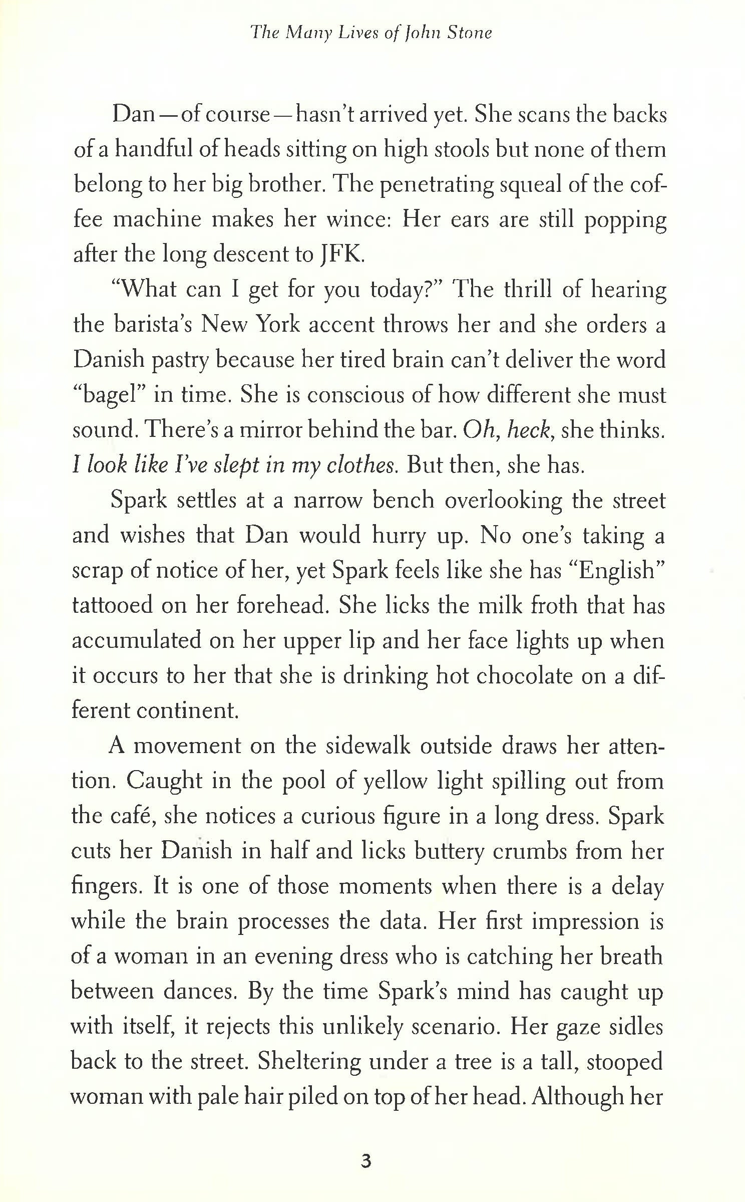 An English teen questions all she knows about aging when she encounters a set of journals that date from the present back to the reign of King Louis XIV in this blend of contemporary and historical fiction from the author of the acclaimed Gideon trilogy. Stella Park (Spark for short) has found summer work cataloging historical archives in John Stones remote and beautiful house in Suffolk, England. She wasnt quite sure what to expect, and her uncertainty about living at Stowney House only increases upon arriving: what kind of people live in the twenty-first century without using electricity, telephones, or even a washing machine? Additionally, the notebooks shes organizing span centuries - they begin in the court of Louis XIV in Versailles - but are written in the same hand. Something strange is going on for sure, and Sparks questions are piling up. Who exactly is John Stone? What connection does he have to these notebooks? And more importantly, why did he hire her in the first place?