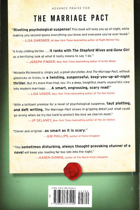 How far is too far when it comes to protecting your marriage? Find out in this relentlessly paced novel of psychological suspense for anyone who loved The Couple Next Door. "Ranks with The Stepford Wives and Gone Girl as a terrifying look at what it really means to say 'I do.'"--Joseph Finder, New York Times bestselling author of The Switch Newlyweds Alice and Jake are a picture-perfect couple. Alice, once a singer in a well-known rock band, is now a successful lawyer. Jake is a partner in an up-and-coming psychology practice. Their life together holds endless possibilities. After receiving an enticing wedding gift from one of Alice's prominent clients, they decide to join an exclusive and mysterious group known only as The Pact. The goal of The Pact seems simple: to keep marriages happy and intact. And most of its rules make sense. Always answer the phone when your spouse calls. Exchange thoughtful gifts monthly. Plan a trip together once per quarter. . . . Never mention The Pact to anyone. Alice and Jake are initially seduced by the glamorous parties, the sense of community, their widening social circle of like-minded couples. And then one of them breaks the rules. The young lovers are about to discover that for adherents to The Pact, membership, like marriage, is for life. And The Pact will go to any lengths to enforce that rule. For Jake and Alice, the marriage of their dreams is about to become their worst nightmare. Praise for The Marriage Pact