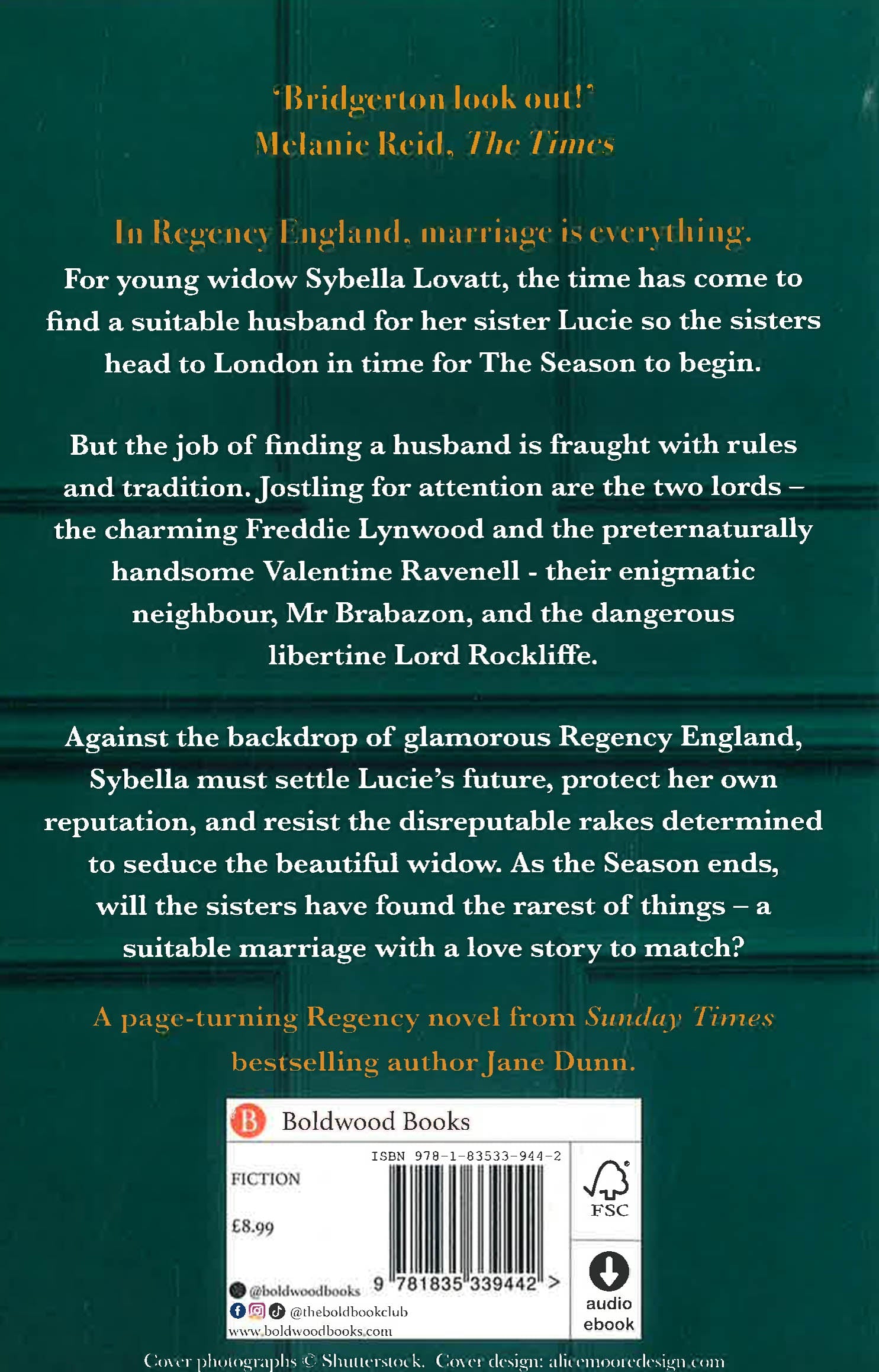 In a time where marriage is everything, young widow Sybella Lovatt must find a suitable husband for her sister and ward Lucie. Male suitors are scarce near their Wiltshire estate, so the sisters resolve to head to London in time for the Season to begin.