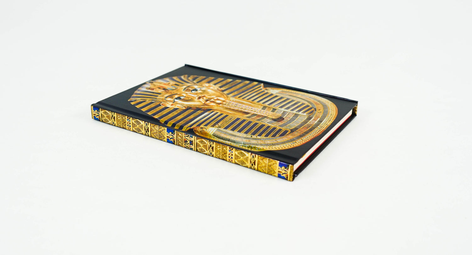 Part of a series of exciting and luxurious Flame Tree Notebooks. Combining high-quality production with magnificent fine art, the covers are printed on foil in five colours, embossed then foil stamped. And they're powerfully practical: a pocket at the back for receipts and scraps, two bookmarks and a solid magnetic side flap. These are perfect for personal use and make a dazzling gift. This example is based on The Mask of Tutankhamun, c. 1357-1349, and printed on silver.