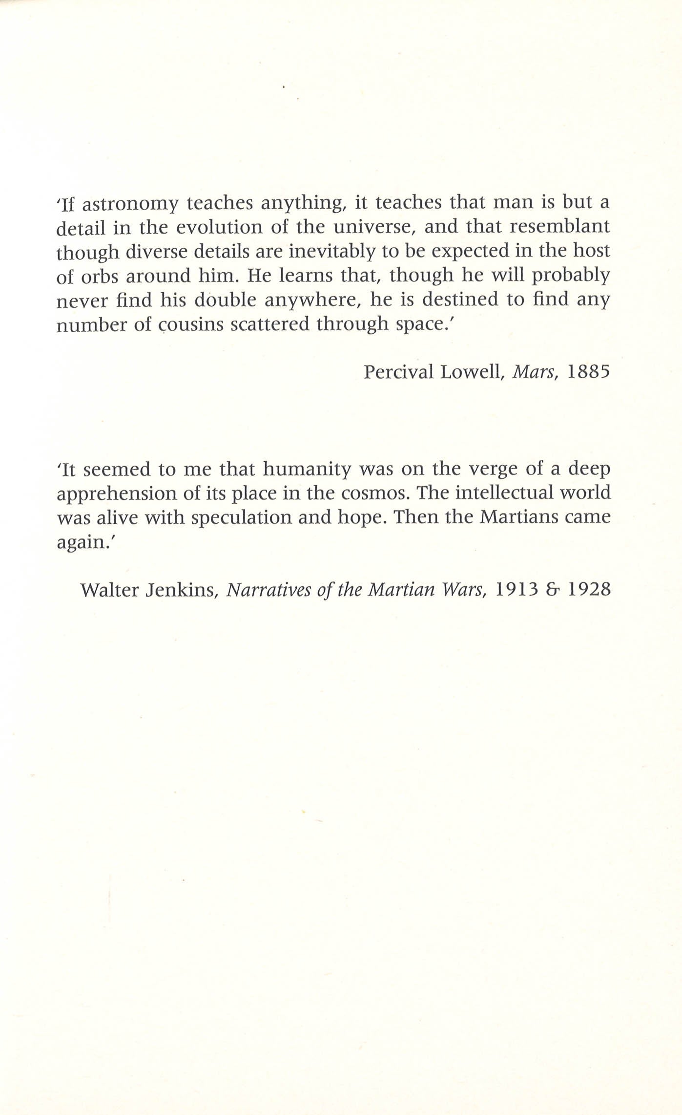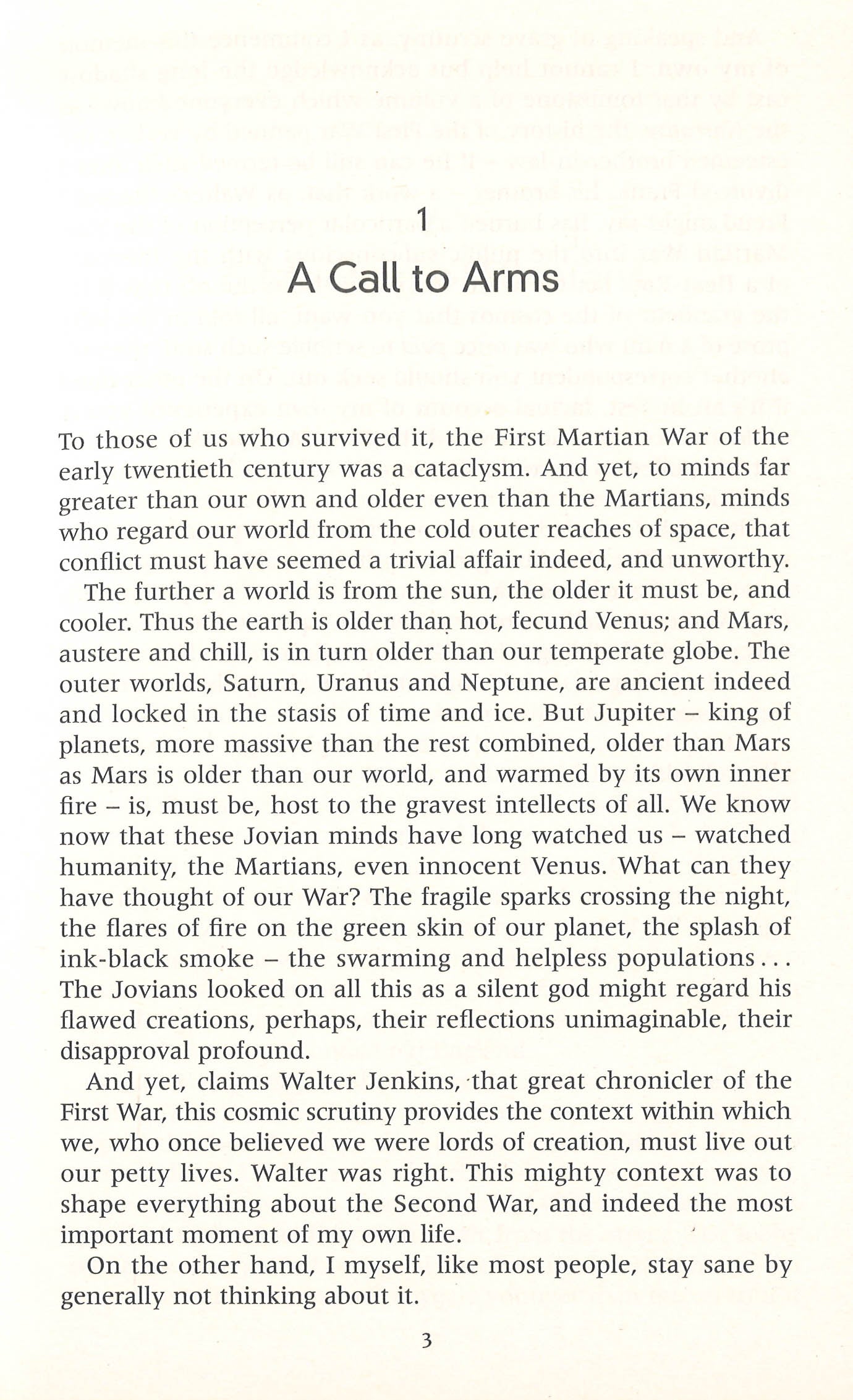 So when the signs of launches on Mars are seen, there seems little reason to worry. Unless you listen to one man, Walter Jenkins, the narrator of Wells' book. He is sure that the Martians have learned, adapted, understood their defeat.