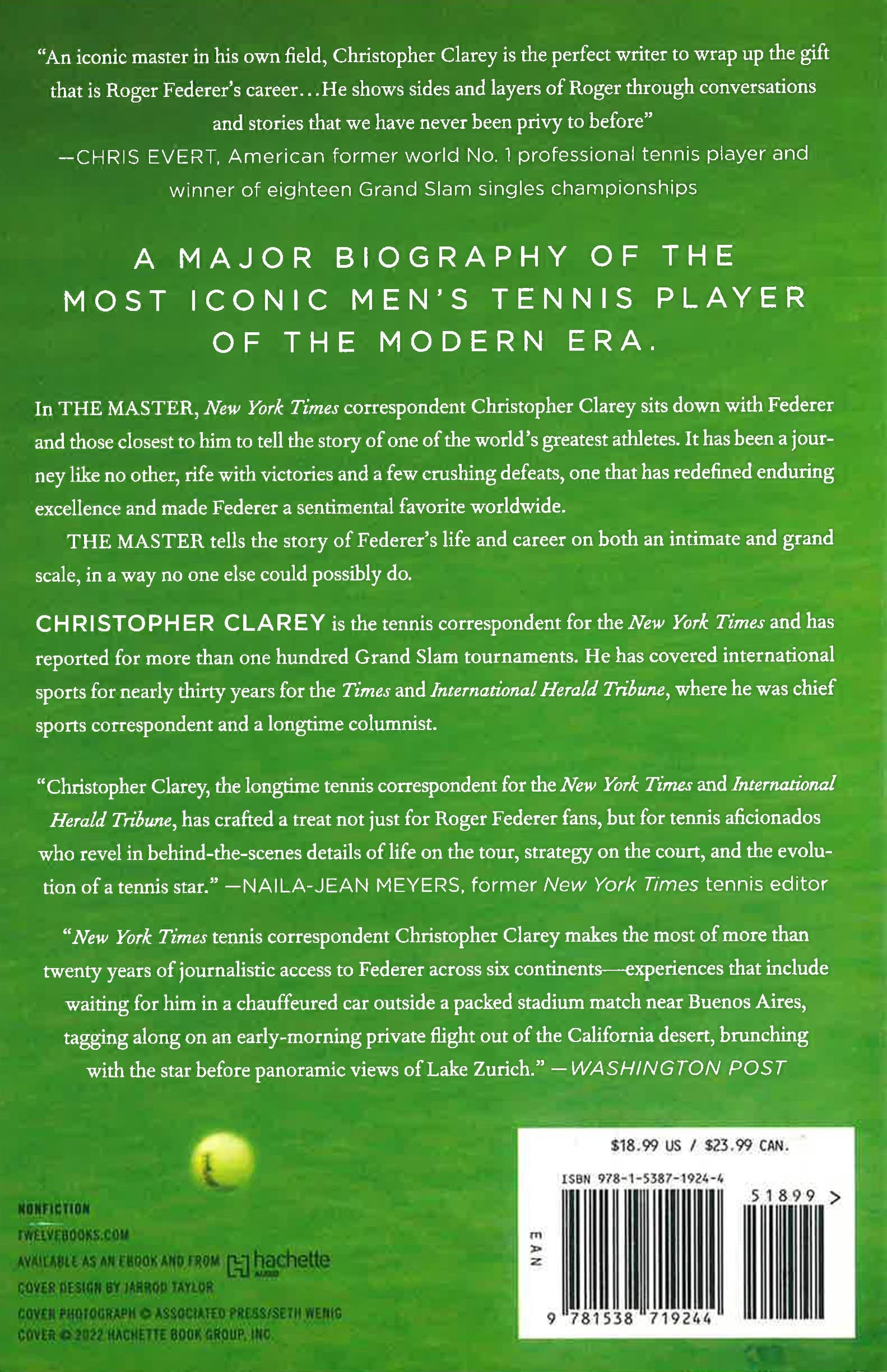 There have been other biographies of Roger Federer, but never one with this kind of access to the man himself, his support team, and the most prominent figures in the game, including such rivals as Rafael Nadal, Novak Djokovic, and Andy Roddick. In The Master, New York Times correspondent Christopher Clarey sits down with Federer and those closest to him to tell the story of the greatest player in men's tennis.