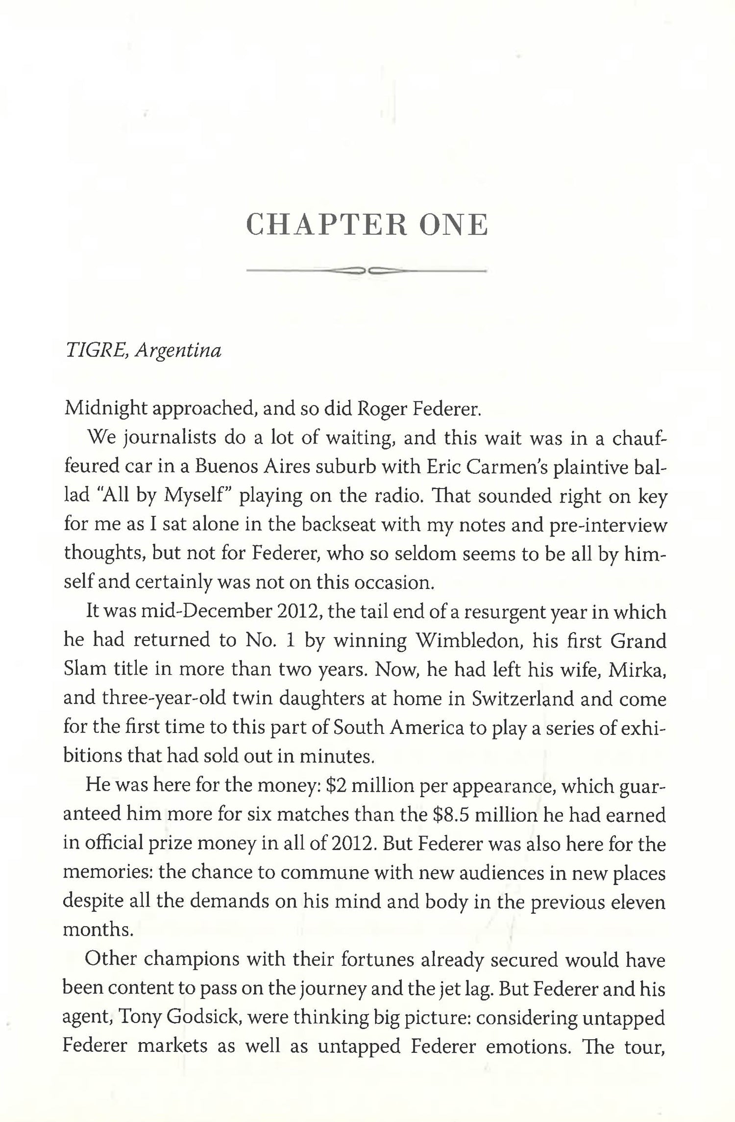 Christopher Clarey, one of the top international sportswriters working today, has covered Federer since the beginning of his professional career. He was in Paris on the Suzanne Lenglen Court for Federer's first Grand Slam match and has interviewed him exclusively more than any other journalist since his rise to prominence. Here, Clarey focuses on the pivotal people, places, and moments in Federer's long and rich career: reporting from South Africa, South America, the Middle East, four Grand Slam tournaments, and Federer's native Switzerland. It has been a journey like no other player's, rife with victories and a few crushing defeats, one that has redefined enduring excellence and made Federer a sentimental favorite worldwide.