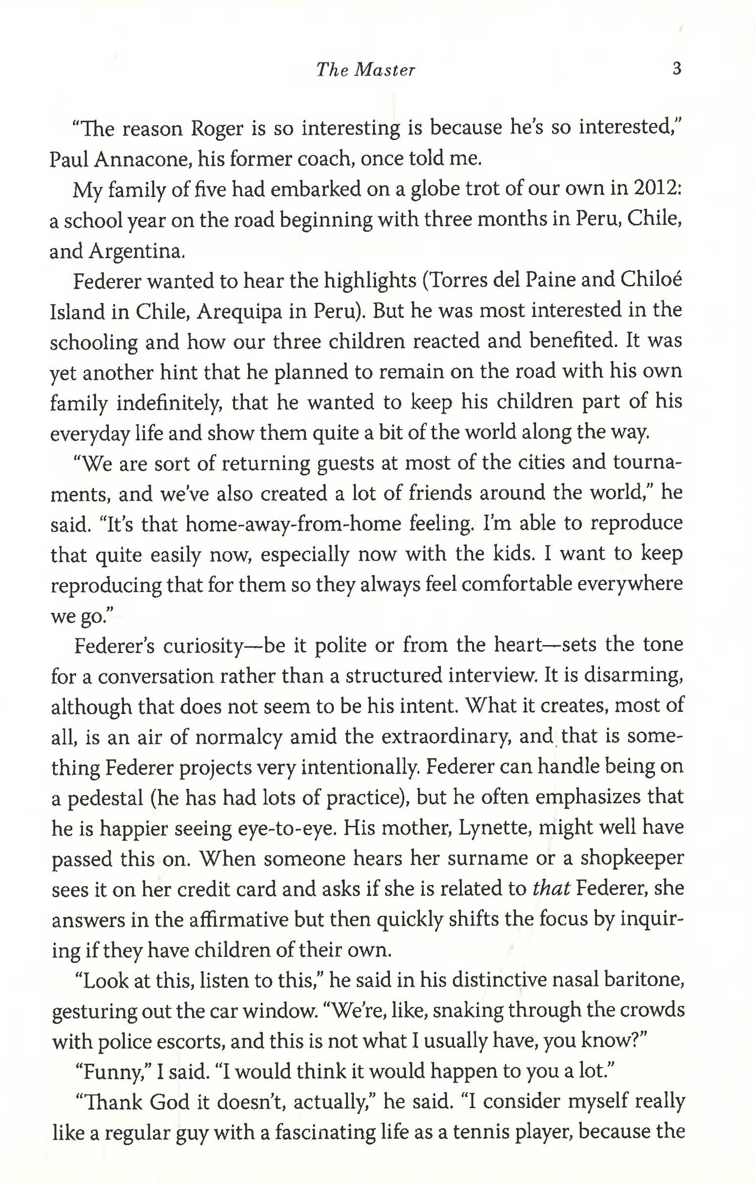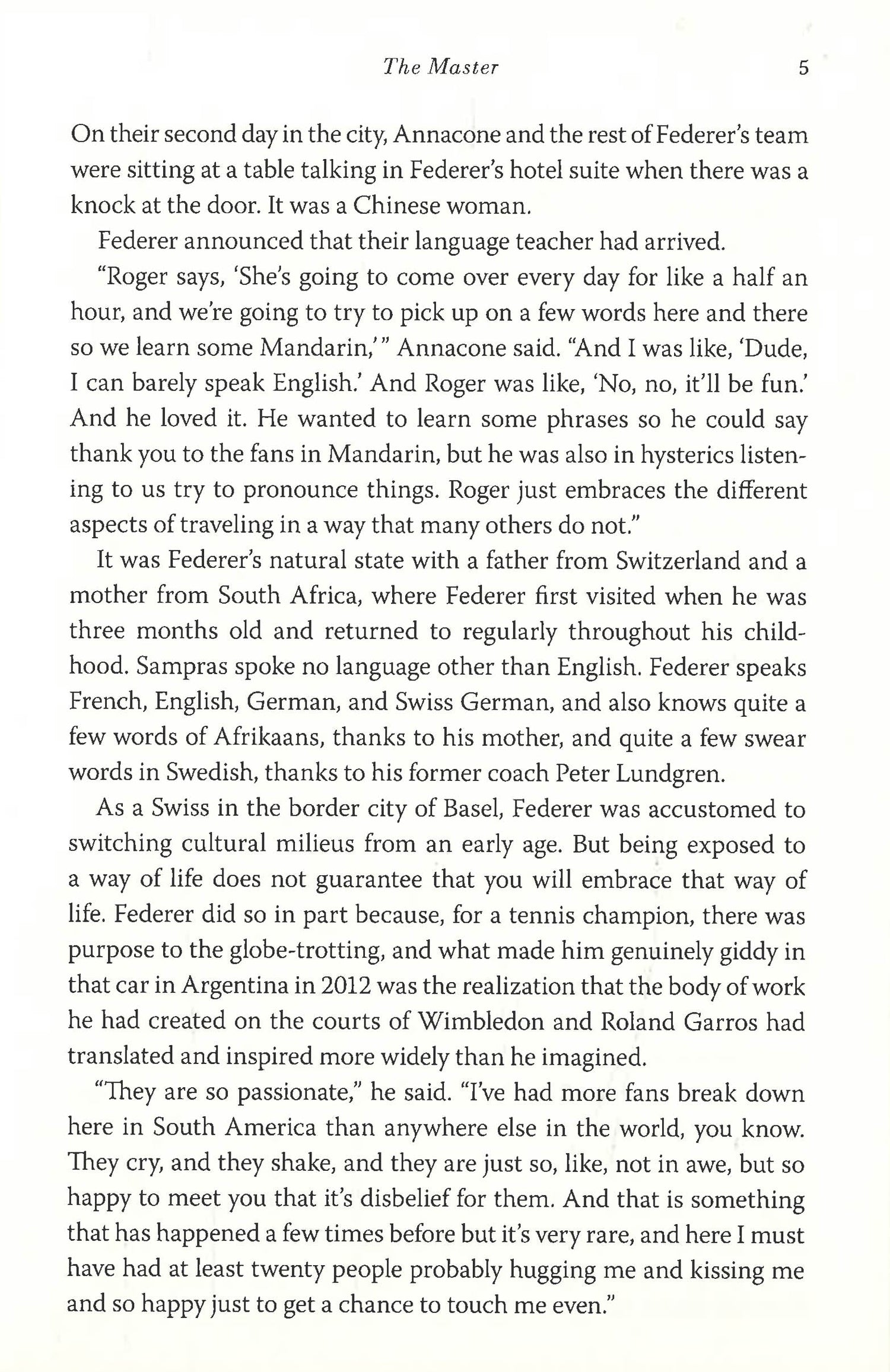 The Master tells the story of Federer's life and career on both an intimate and grand scale, in a way no one else could possibly do.