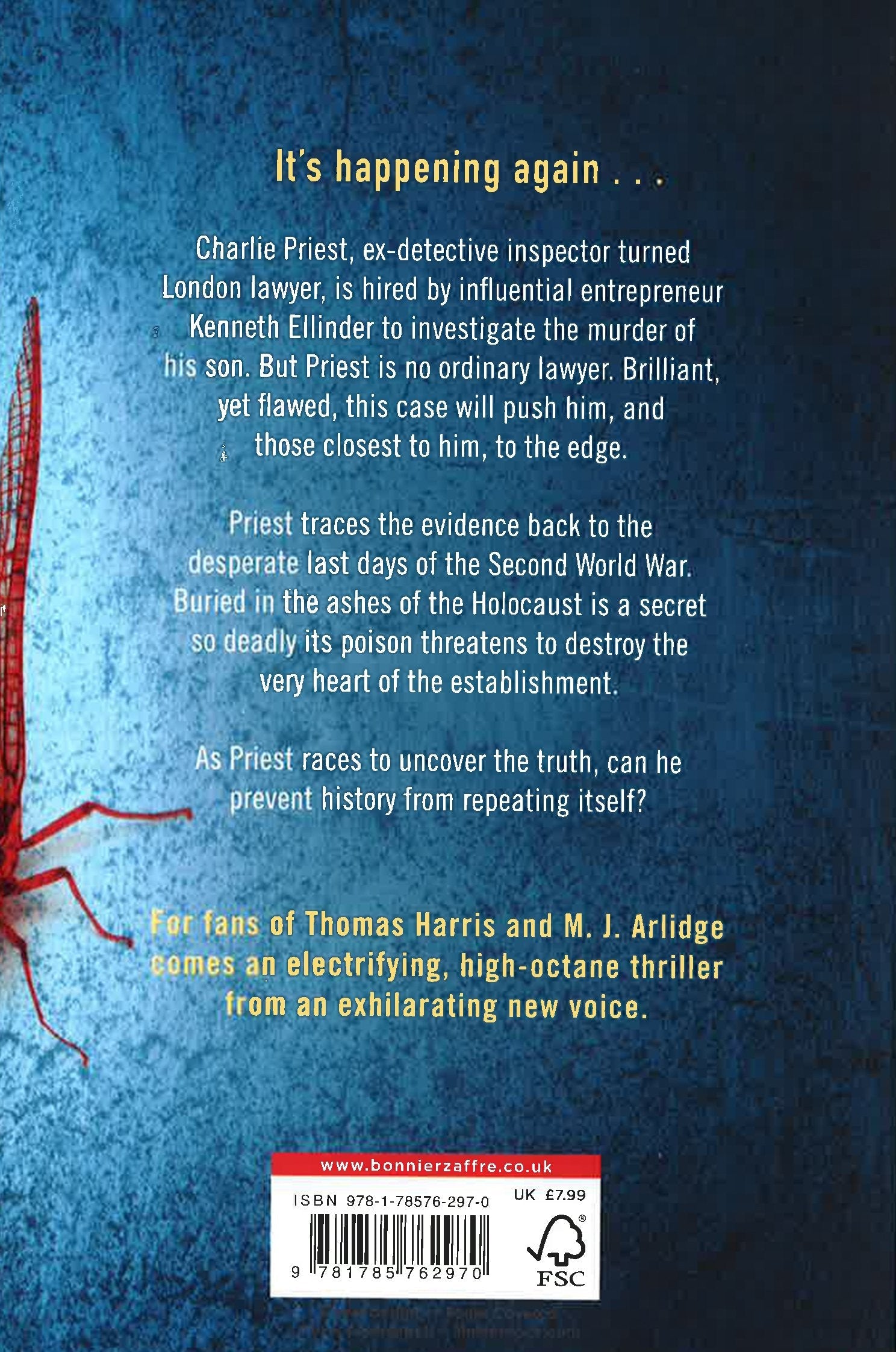 A mutilated body discovered in the woods. A murderous plan conceived in the past. A reckoning 70 years in the making. When lawyer Charlie Priest is attacked in his own home by a man searching for information he claims Priest has, he is drawn into a web of corruption that has its roots in the last desperate days of World War II. When his attacker is found murdered the next day, Priest becomes a suspect and the only way to clear his name is to find out about the mysterious House of Mayfly—a secret society that people will kill for. As Priest races to uncover the truth, can he prevent history from repeating itself?