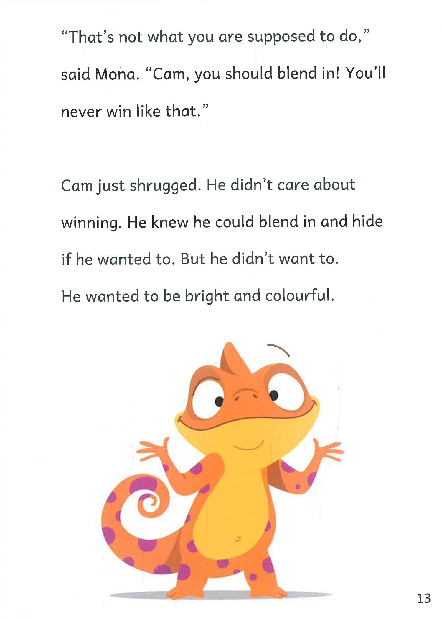 Cam loves being a chameleon, and being bright and colourful. But everyone says he is supposed to blend in. Can Cam prove them wrong?