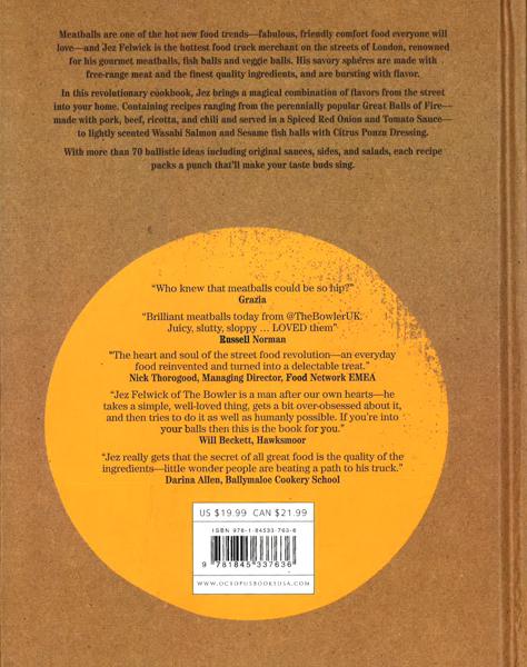 70 ballistic recipes from the hottest food merchant on London's street food scene. Everyone loves a meatball, but we're not talking just your average meatball here, Jez Felzwick, aka The Bowler is renowned for his gourmet meatballs, fishballs and vegetable balls, all made with the finest free-range meat and quality ingredients, bursting with flavor and served with fresh-tasting sauces and sides. In this revolutionary cookbook, The Bowler brings a delicious combination of flavors from the street to your home, with recipes ranging from the perennially popular Great Balls of Fire made with pork, beef, ricotta and chilli and served in a Spiced Red Onion and Tomato Sauce, to lightly scented Wasabi Salmon and Sesame fishballs with Asian Greens. With more than 70 ballistic ideas including original sauces, sides and salads, each recipe packs a punch that will make your taste buds sing.