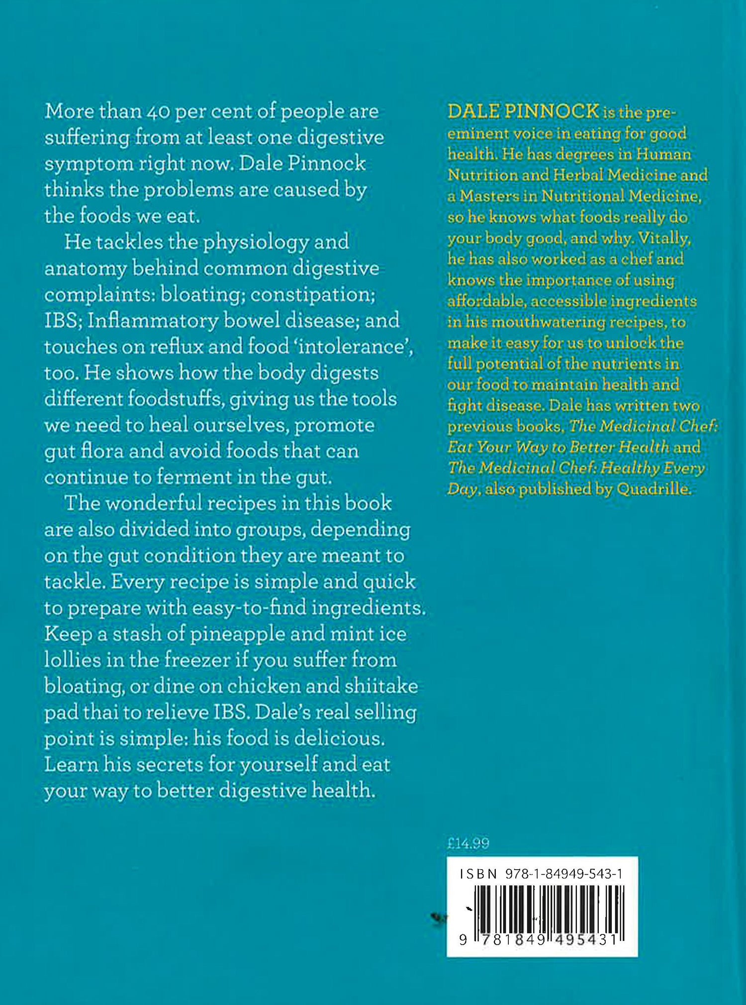 In this title, Dale tackles the issues people suffer with their digestion, trying to understand the reasons behind the conditions and most importantly how you can help yourself to relieve them. His approach is designed to work alongside conventional medical treatment. Dale believes you can relieve a whole spectrum of digestive symptoms via diet. He believes that making a long-term change to the way you eat is a far better path to good digestion than short-lived, difficult-to-follow diets. He tackles the physiology and anatomy behind each of a handful of the most common digestive complaints: bloating; constipation; IBS; inflammatory bowel disease (Crohn's and ulcerative colitis), and touches on reflux and food 'intolerance', too. He shows how the body digests different foodstuffs, therefore giving readers the tools they need to heal themselves, promote gut flora and avoid foods that can continue to ferment in the gut. The wonderful recipes in this book are divided into groups, depending on the gut condition they are intended to tackle. Lunch on Bean and corn quesadillas if you have constipation. To help relieve IBS, try Chicken and shiitake pad thai, or dine on Chicken meat loaf with roasted roots to help relieve inflammatory bowel disease. Every recipe is simple and quick to prepare with easy-to-find ingredients.