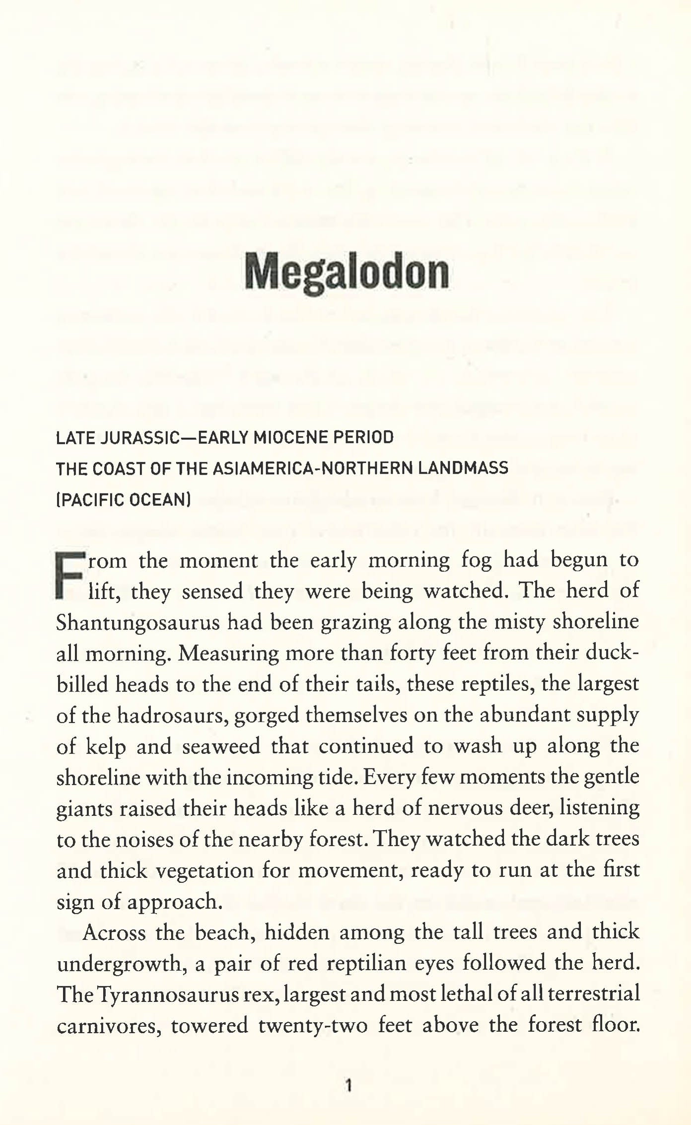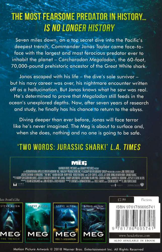 Resurrection of the MEG books, starring Megalodon, a 75-ft long prehistoric mega shark. The most fearsome predator in history... Is no longer history. Seven miles down, on a top secret dive into the Pacific's deepest trench, Commander Jonas Taylor came face-to-face with the largest and most ferocious predator ever to inhabit the planet - Carcharodon Megalodon, the 60-foot, 70,000-pound prehistoric ancestor of the Great White shark. Jonas escaped with his life - the dive's sole survivor - but his navy career was over, his nightmare encounter written off as a hallucination. But Jonas knows what he saw was real. He's determined to prove that Megalodon still feeds in the ocean's unexplored depths. Now, after seven years of research and study, he finally has his chance to return to the abyss. Diving deeper than ever before, Jonas will face terror like he's never imagined. The Meg is about to surface and, when she does, nothing and no one is going to be safe. Includes MEG: Origins.