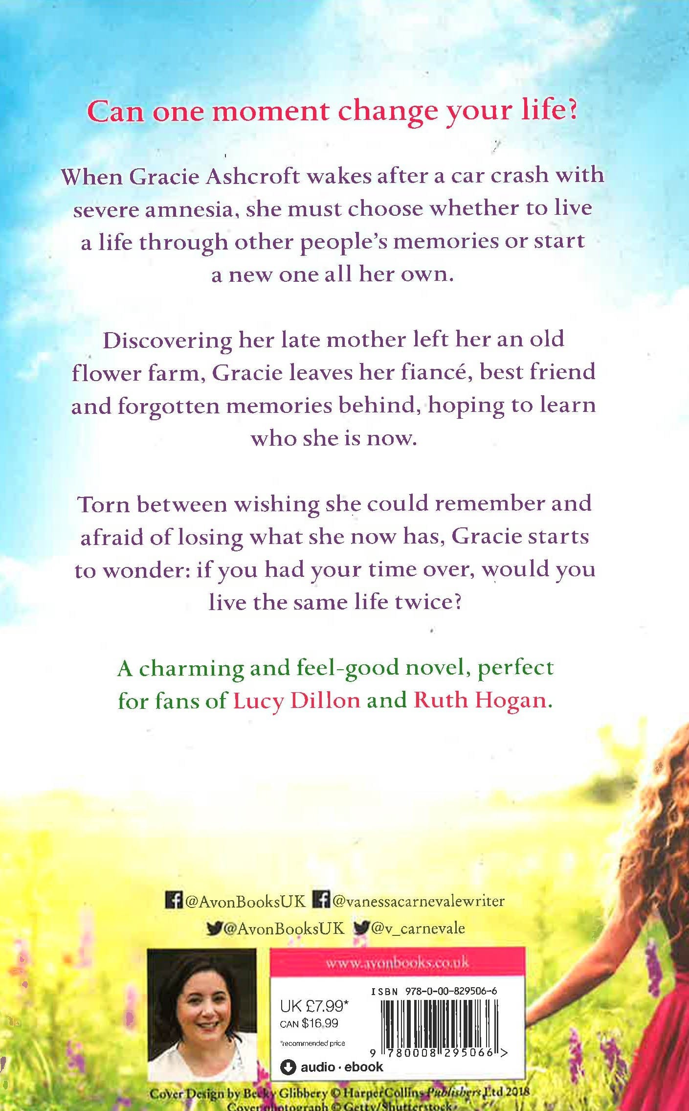When Gracie Ashcroft wakes after a crash with severe amnesia, she must choose whether to live a life through other people’s memories or to start a new life all her own.Discovering her late mother left her an old flower farm, Gracie leaves her fiancé, best friend and the home full of forgotten memories behind, hoping to learn who she is now.Torn between wishing she could remember and afraid of losing what she now has, Gracie starts to wonder: if you had your time over, would you live the same life twice?The feel-good and sweeping love story that fans of Harriet Evans, Lucy Dillon and Ruth Hogan will love
