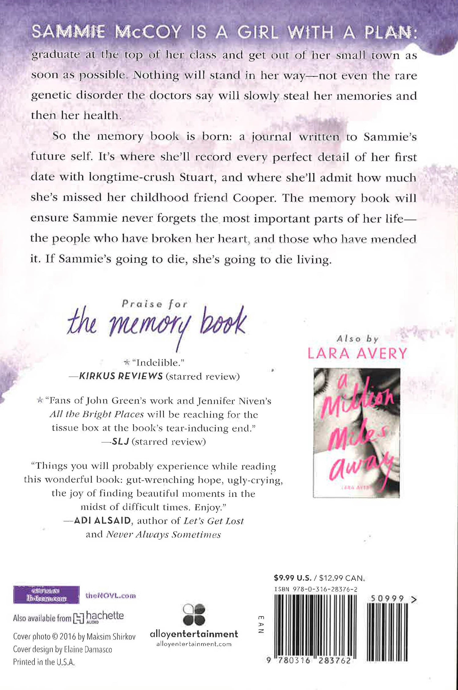 Perfect for fans of Everything, Everything and Five Feet Apart, a bittersweet story of love and loss, told one journal entry at a time. Sammie McCoy is a girl with a plan: graduate at the top of her class and get out of her small town as soon as possible. Nothing will stand in her way-not even the rare genetic disorder the doctors say will slowly steal her memories and then her health. So the memory book is born: a journal written to Sammie's future self. It's where she'll record every perfect detail of her first date with longtime-crush Stuart, and where she'll admit how much she's missed her childhood friend Cooper. The memory book will ensure Sammie never forgets the most important parts of her life-the people who have broken her heart, and those who have mended it. If Sammie's going to die, she's going to die living.