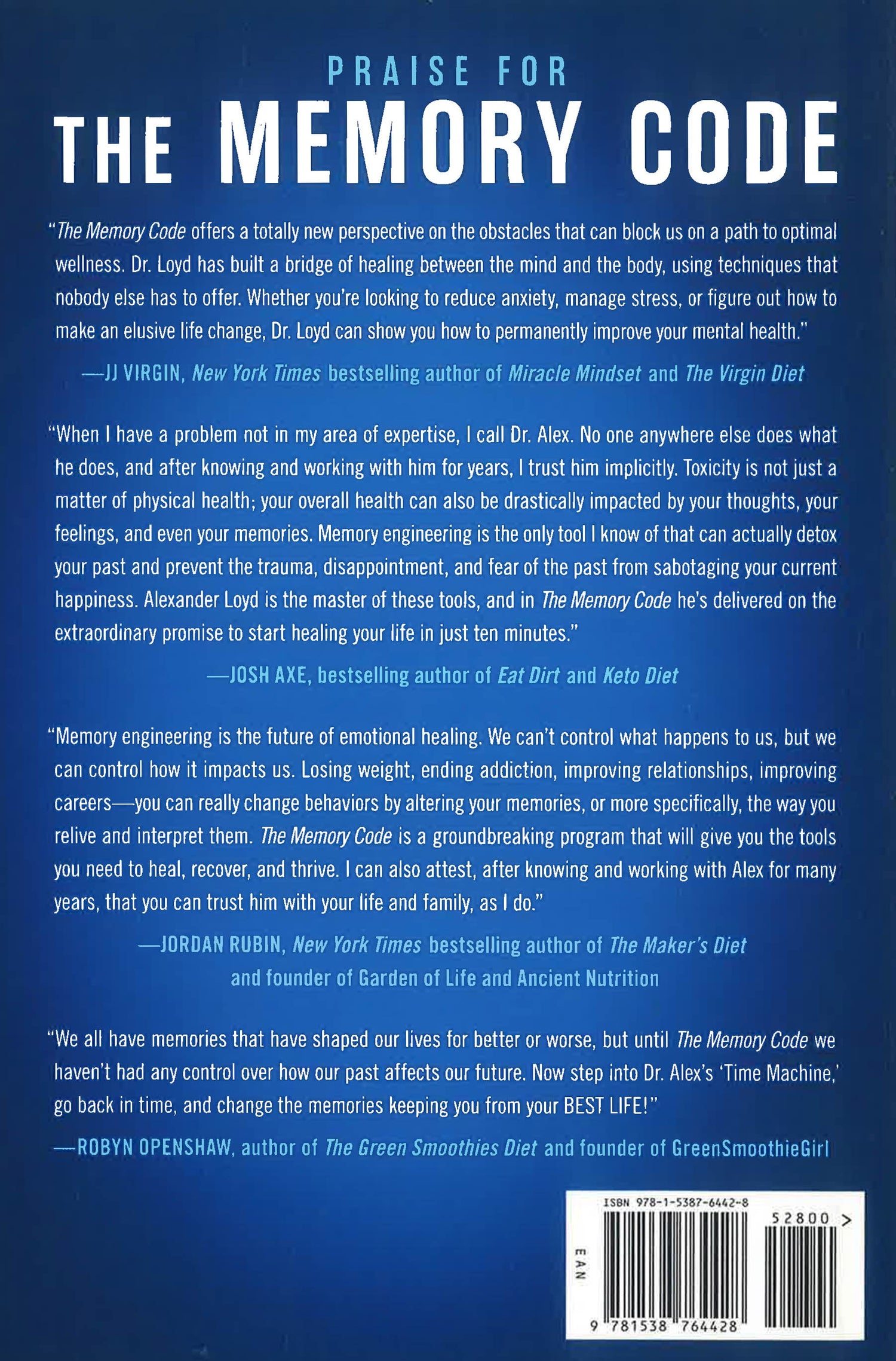 Memory Reengineering is a toolbox of skills that disconnect painful emotions from memories, replacing them with happier and healthier feelings. In The Memory Code, Dr. Loyd teaches readers that the past does not have to dictate the future. You can change your behaviors by changing the way you tell your story-and once you understand the process, you can begin to feel the effects in as little as 10 minutes. Whether you want to improve at work, fix your relationships, end an addiction, or just finally move past painful memories to achieve self-growth, The Memory Code will give you the power to change.