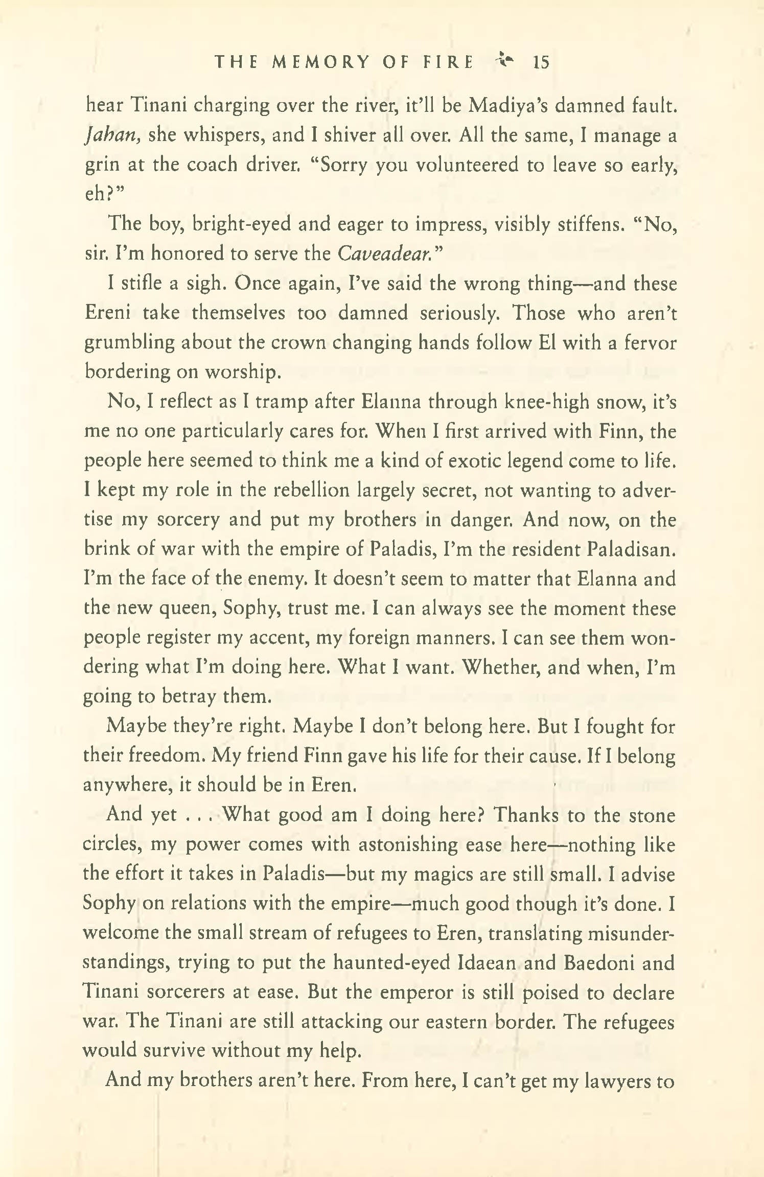 So when the empire threatens war in retribution for Elanna's illegal sorcery, Jahan leaves Eren to negotiate with the emperor on Queen Sophy's behalf. But the world he left has changed - riots rock the city of Ida, his brother is missing and the crown prince refuses to speak to him.