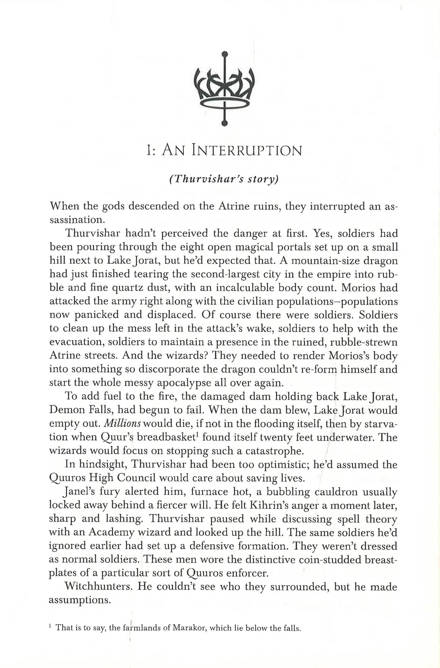 To buy time for humanity, Kihrin needs to convince the king of the Manol vané to perform an ancient ritual which will strip the entire race of their immortality, but it's a ritual which certain vané will do anything to prevent. Including assassinating the messengers.