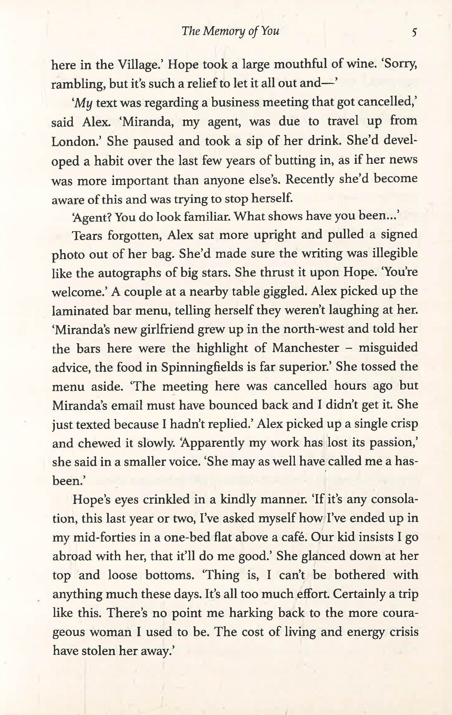 Just at that moment, it sounds like the answer to all her problems. So Alex persuades Hope to let her step into her shoes for a month. She brushes away Hope’s attempts to explain about the café, instead demanding to know more about the owner Tom.