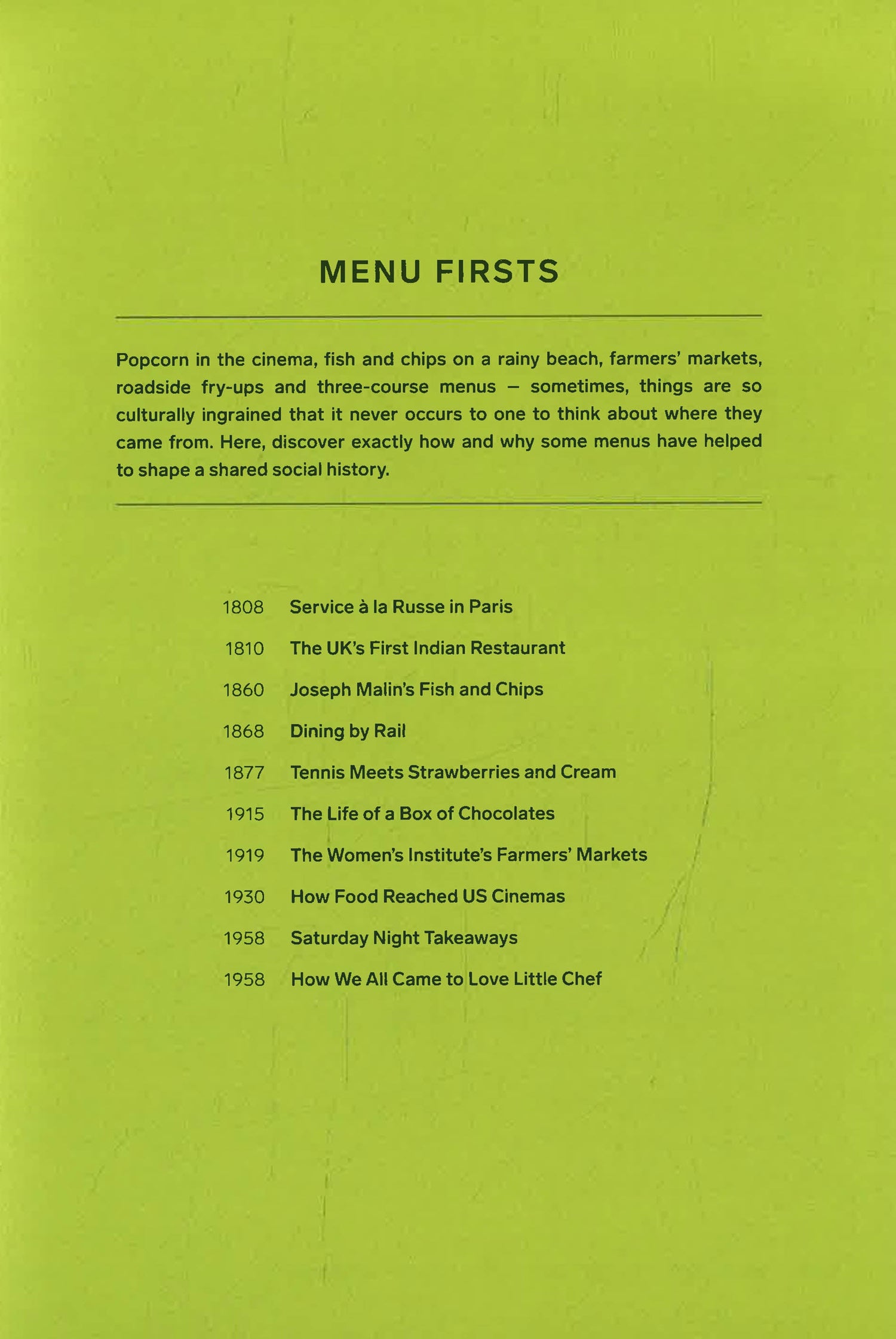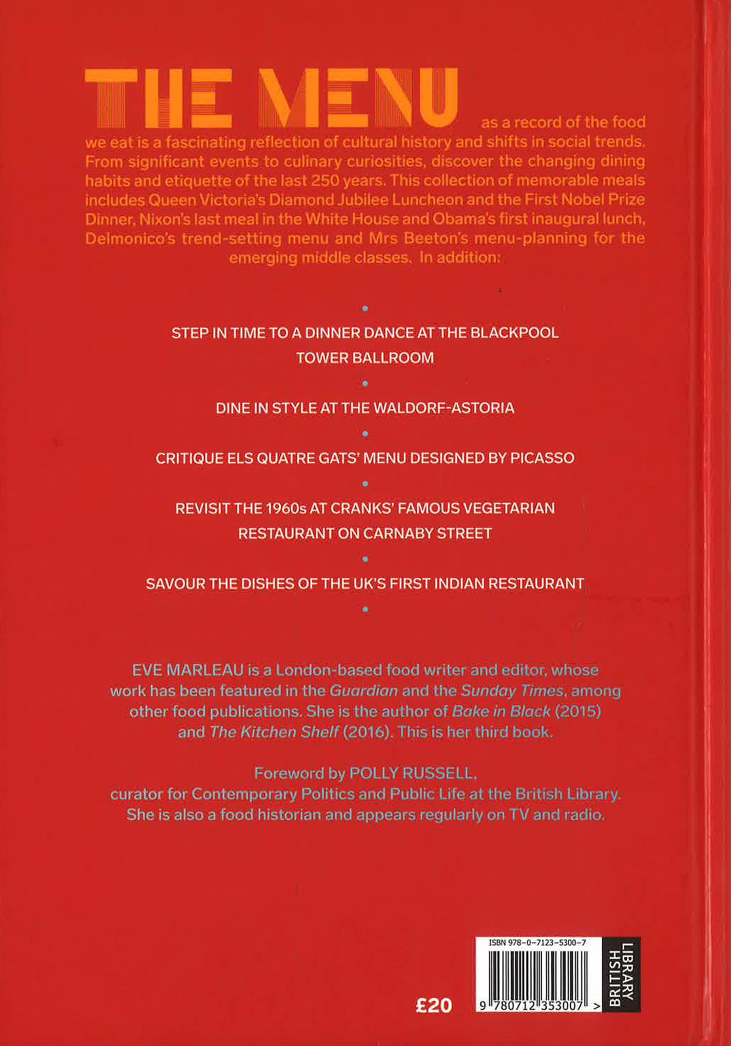 Fascinating and entertaining, the menu, as a record of the food we eat, tells us much about who we were and how we lived. From the historically significant to the unexpected, discover what was eaten at the first Nobel Prize dinner; what Barack Obama chose for his inauguration meal; what the Tsar and Tsarina ate at their infamous society balls; why the first pre-made sandwich was so significant; and what sort of inflight grub was served up at supersonic speeds on Concorde. Step in time to dinner dances at the Blackpool Tower Ballroom; delight in Elvis and Priscilla's wedding breakfast; marvel at the Titanic's last sitting and raise a glass to El Bulli's closing service.