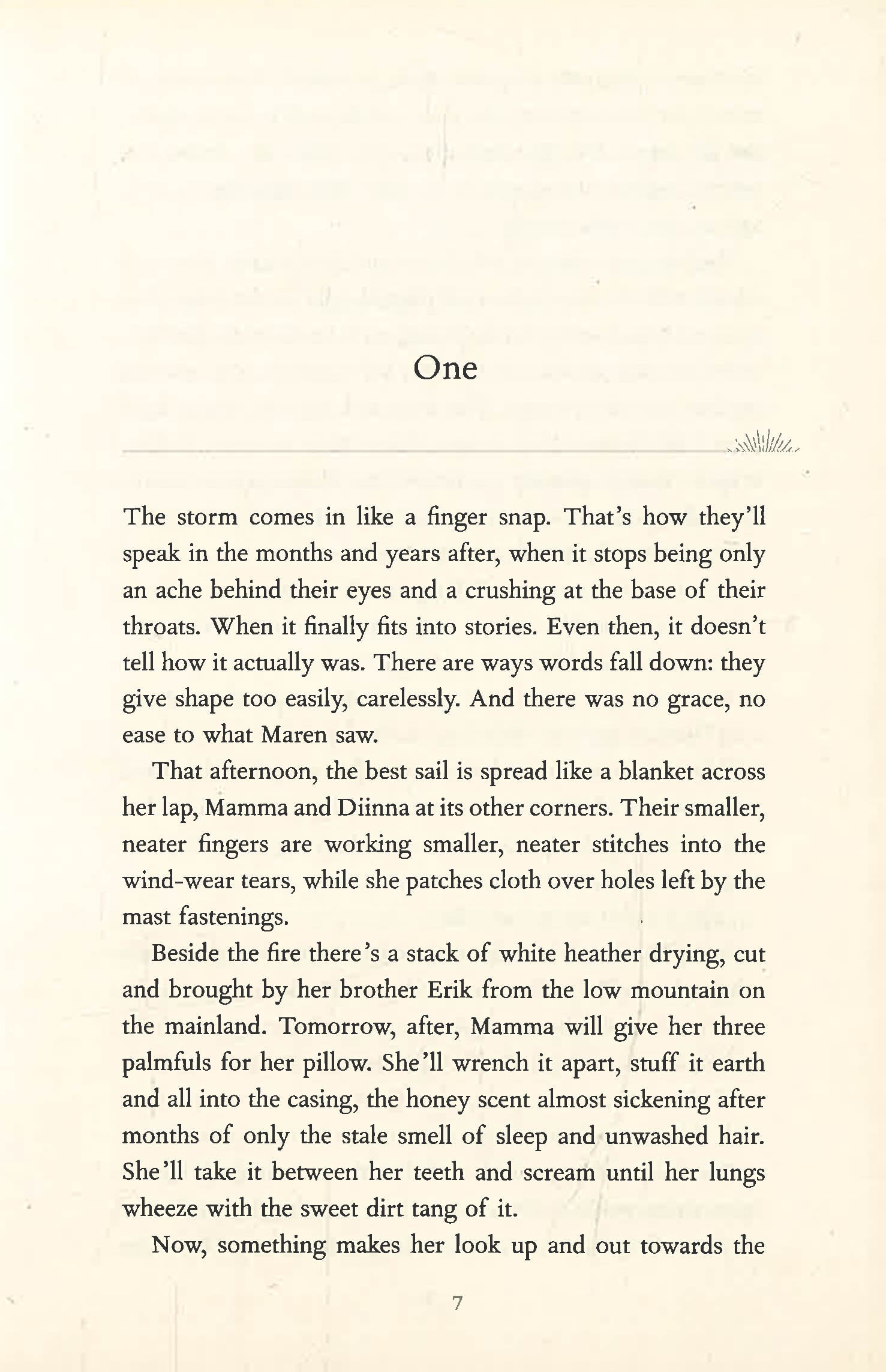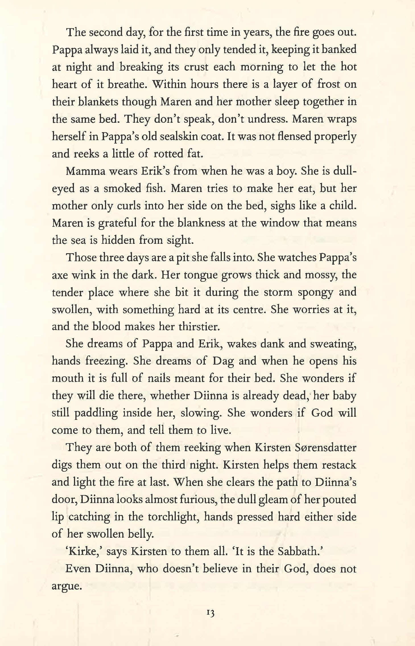 Finnmark, Norway, 1617. Twenty-year-old Maren Bergensdatter stands on the craggy coast, watching the sea break into a sudden and reckless storm. Forty fishermen, including her brother and father, are drowned and left broken on the rocks below. With the menfolk wiped out, the women of the tiny Northern town of Vardø must fend for themselves.