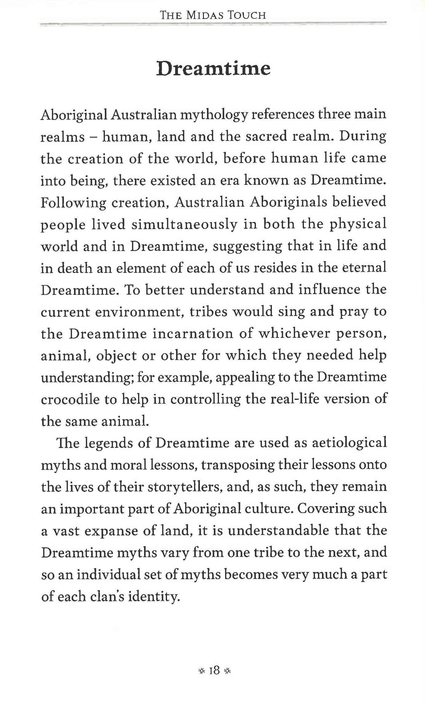 This authoritative and fascinating introduction to the legends of history will reintroduce readers to the cyclopes, Minotaur and centaurs of the Ancient Greeks, as well as shedding light on the wider world of mythology. The Midas Touch includes a stunning array of fascinating tales and gets to grips with the ancient stories of Aboriginal, Sumerian, Egyptian, Mesoamerican, Maori, Greek, Roman, Indian, Norse and Japanese cultures, encompassing legends from the most diverse societies and the most ancient cultures from across the globe.In a concise yet comprehensive format, The Midas Touch is a wonderful evocation of the hugely entertaining stories and characters of mythology.
