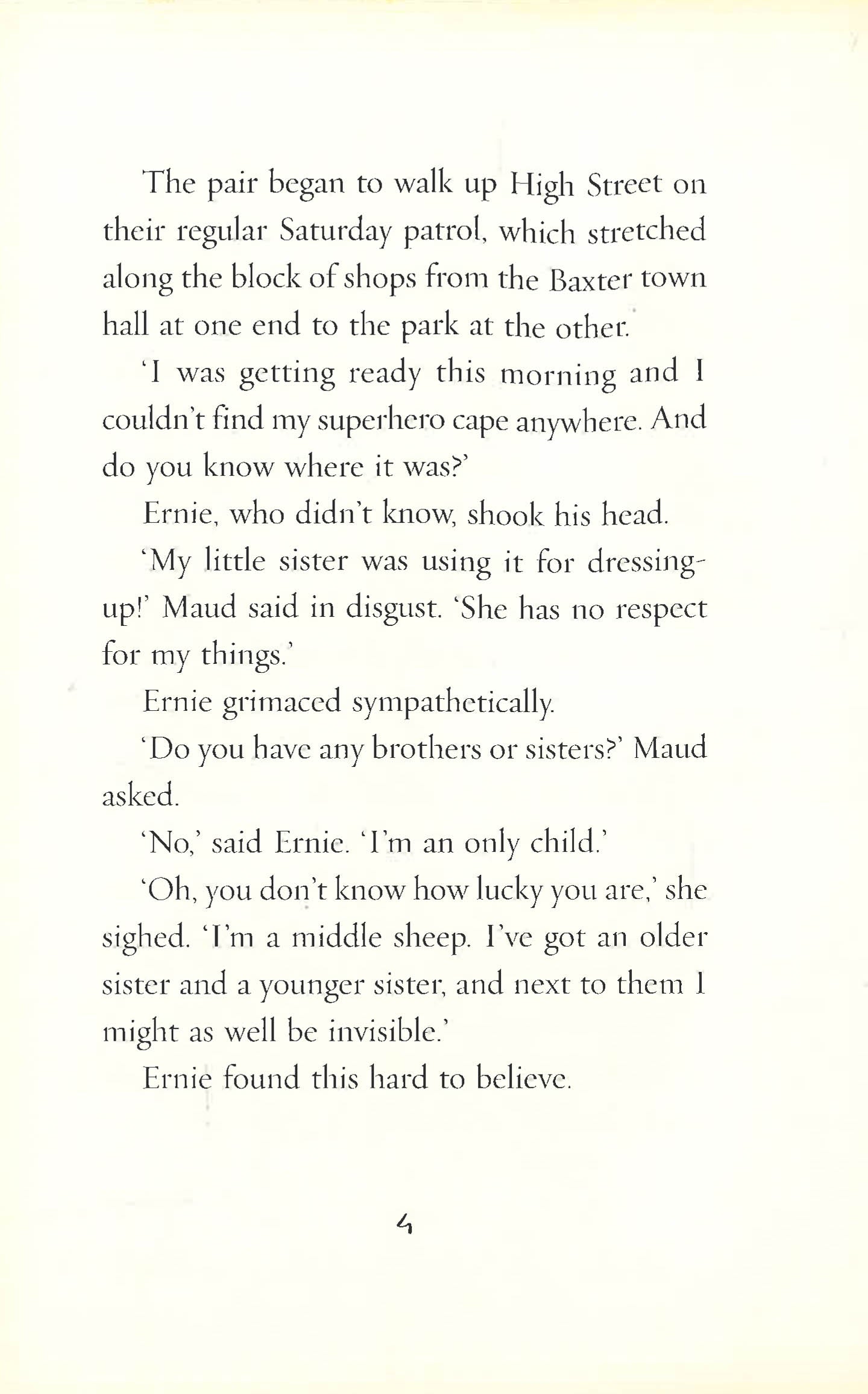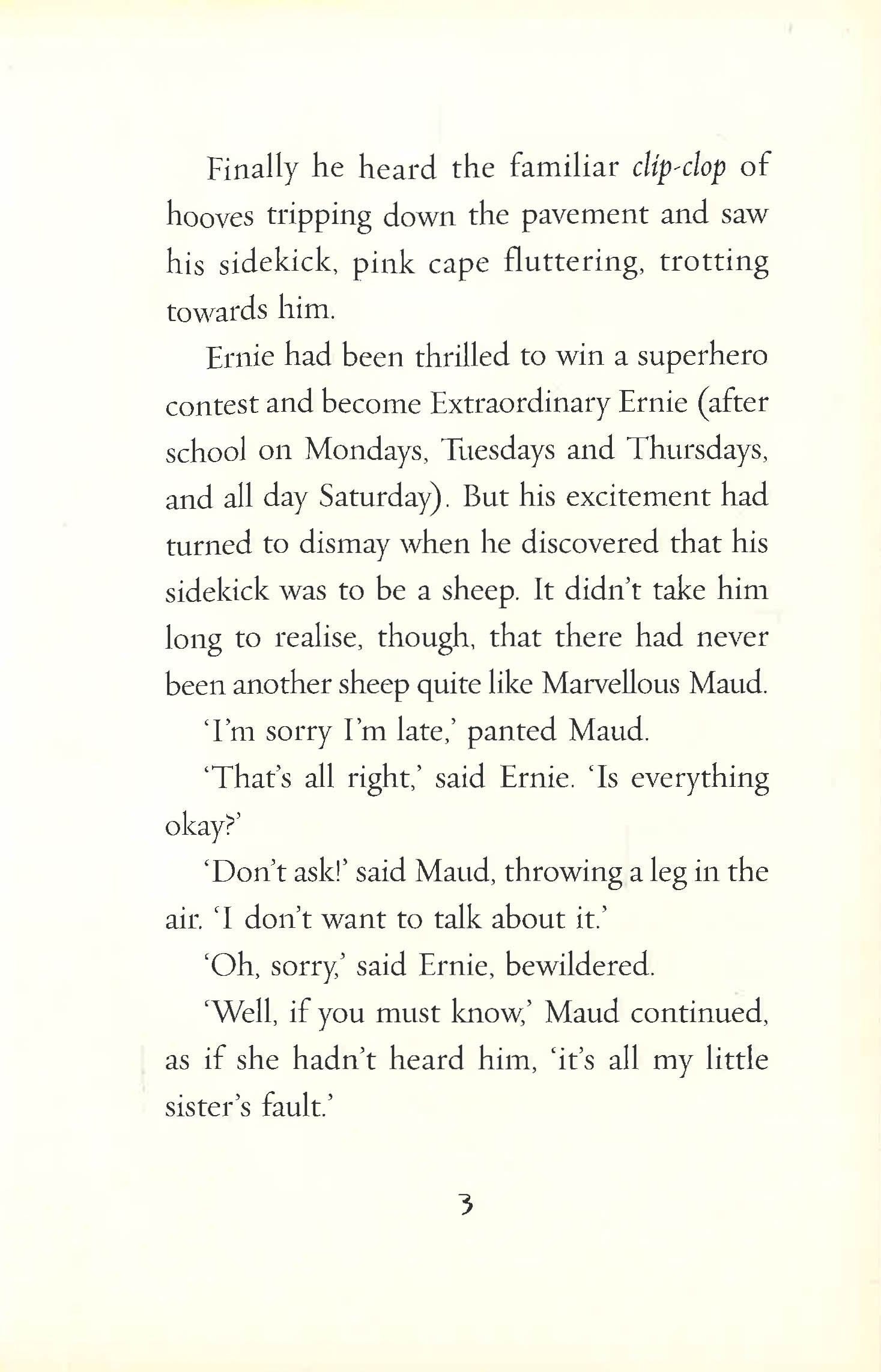 The adventures of Extraordinary Ernie and Marvelous Maud continue but who or what is making the usually cheerful and dependable Maud so grumpy? And why are she and Ernie arguing all the time? It seems to Ernie that being his sidekick just isn t important to Maud anymore. Then Valiant Vera says that if the two trainee superheroes can t work together, they will be thrown out of the Superheroes Society. Ernie and Maud must learn the value of teamwork (and how to get a sheep out of a tree) before it s too late. Ernie and Maud are back for another hilarious and fast-paced book full of the same sort of delightful characters and hilarious story that entertained readers in Extraordinary Ernie and Marvelous Maud.