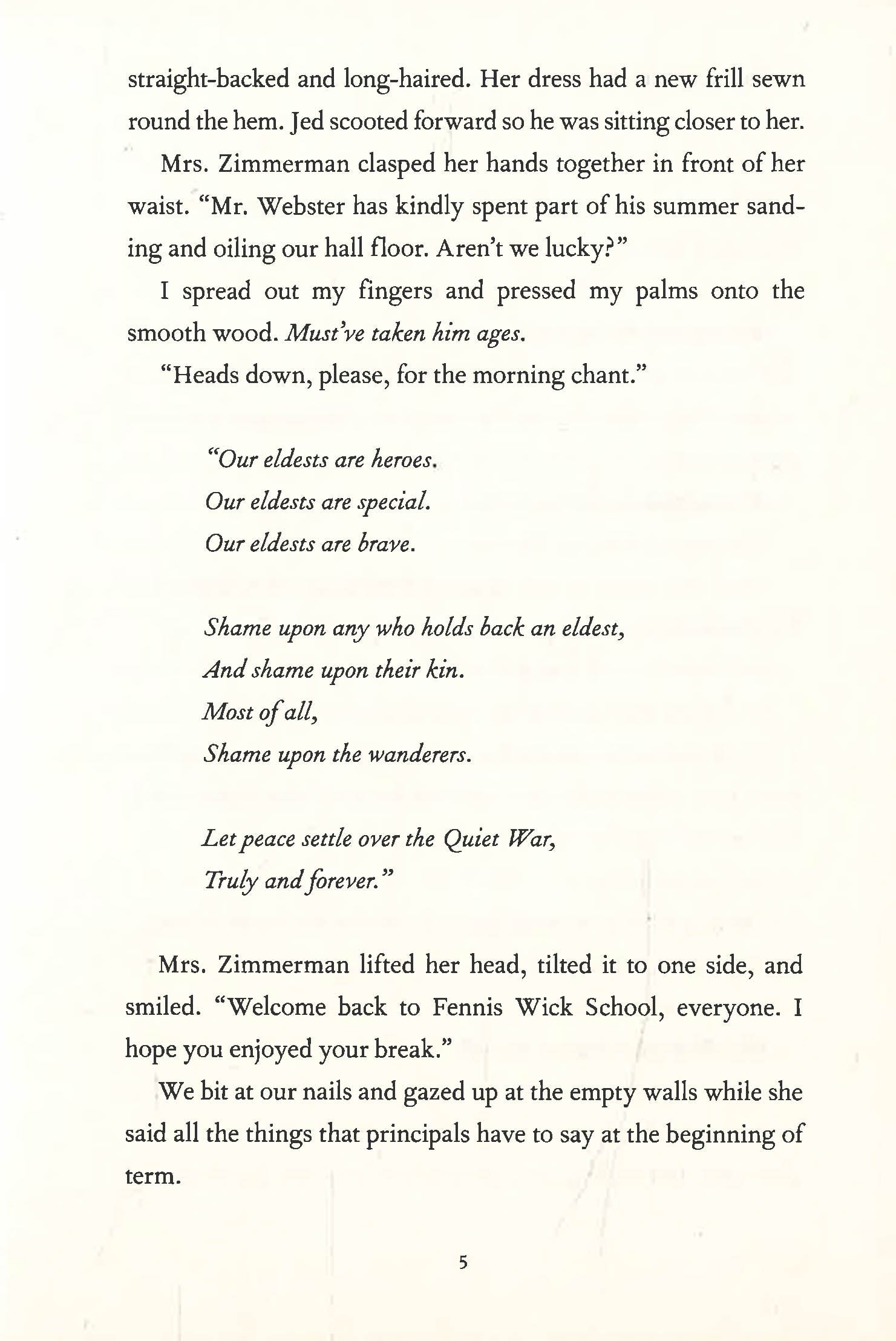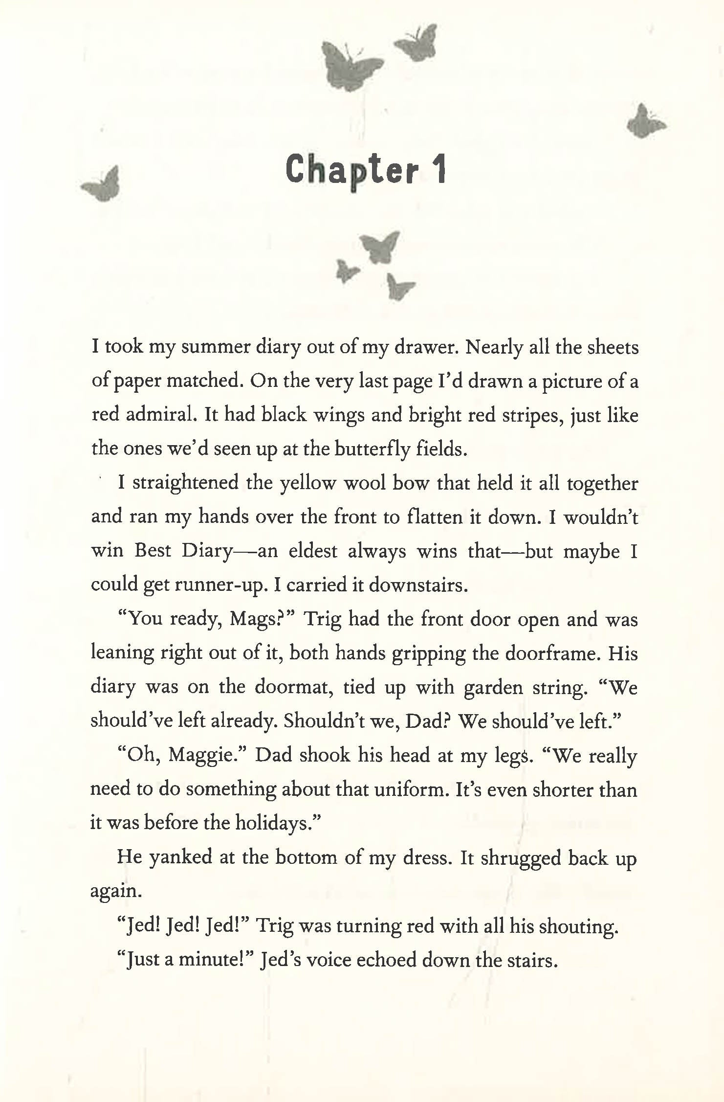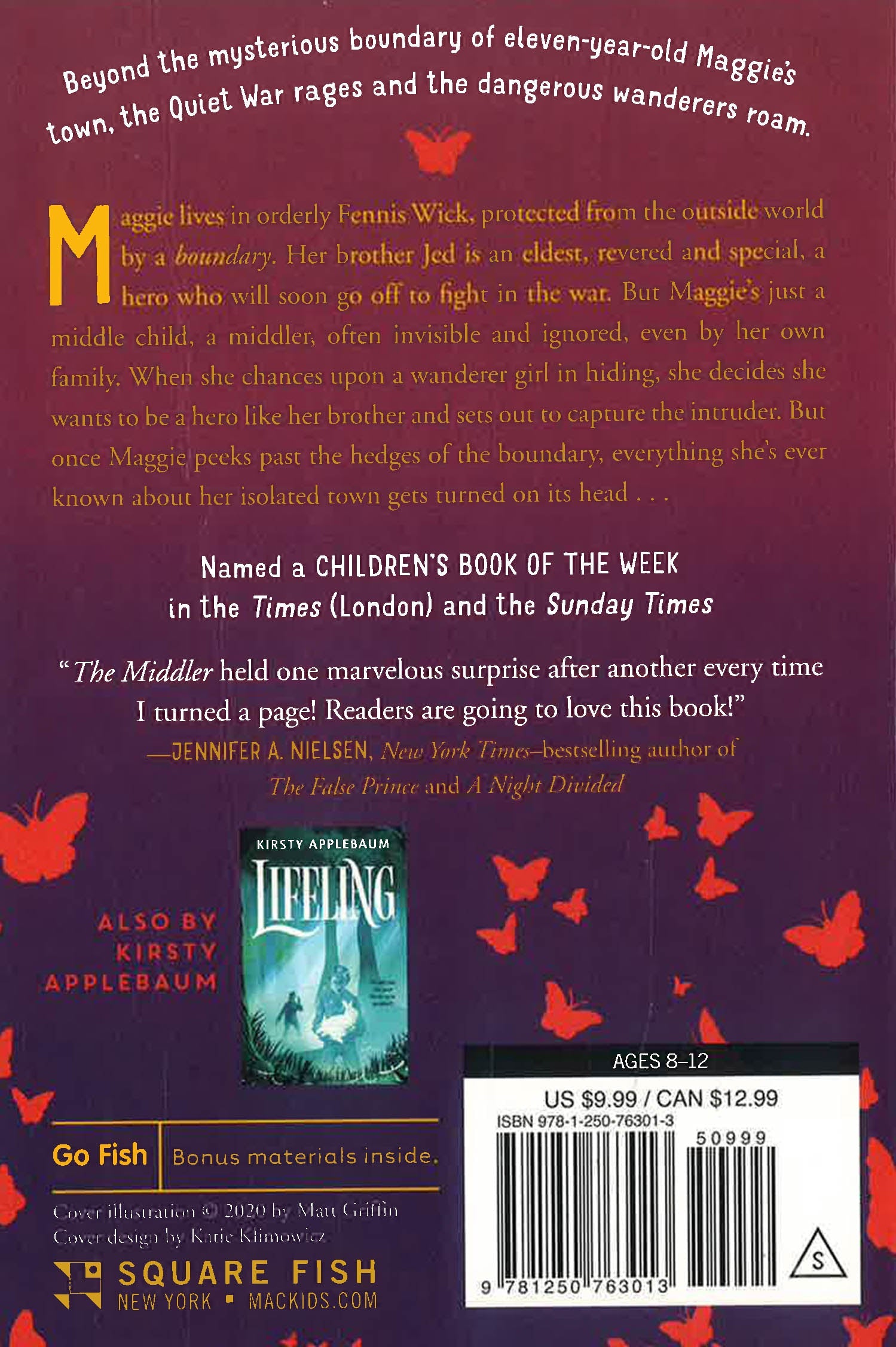 Maggie lives in orderly Fennis Wick, protected from the outside world by a boundary. Her brother Jed is an eldest, revered and special, a hero who will soon go off to fight in the war. But Maggie’s just a middle child, a middler, often invisible and ignored, even by her own family.