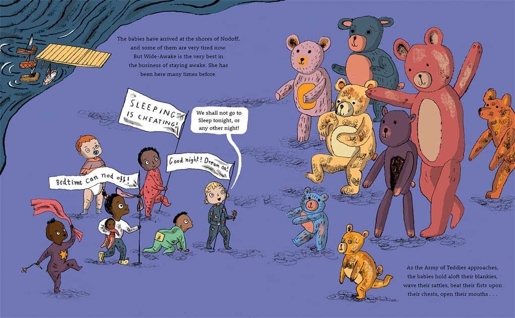 Babies arise! In an epic quest to stay awake, the Midnight Babies must overcome sleepy temptation: battling the forces of Slumberland, venturing through the Forest of Nightlights and the Sea of Stories, voyaging through the Garden of Lullabies to the Rockabye River, and even through the dreaded Land of Nodoff. But can they resist their greatest challenge: the Cuddle?