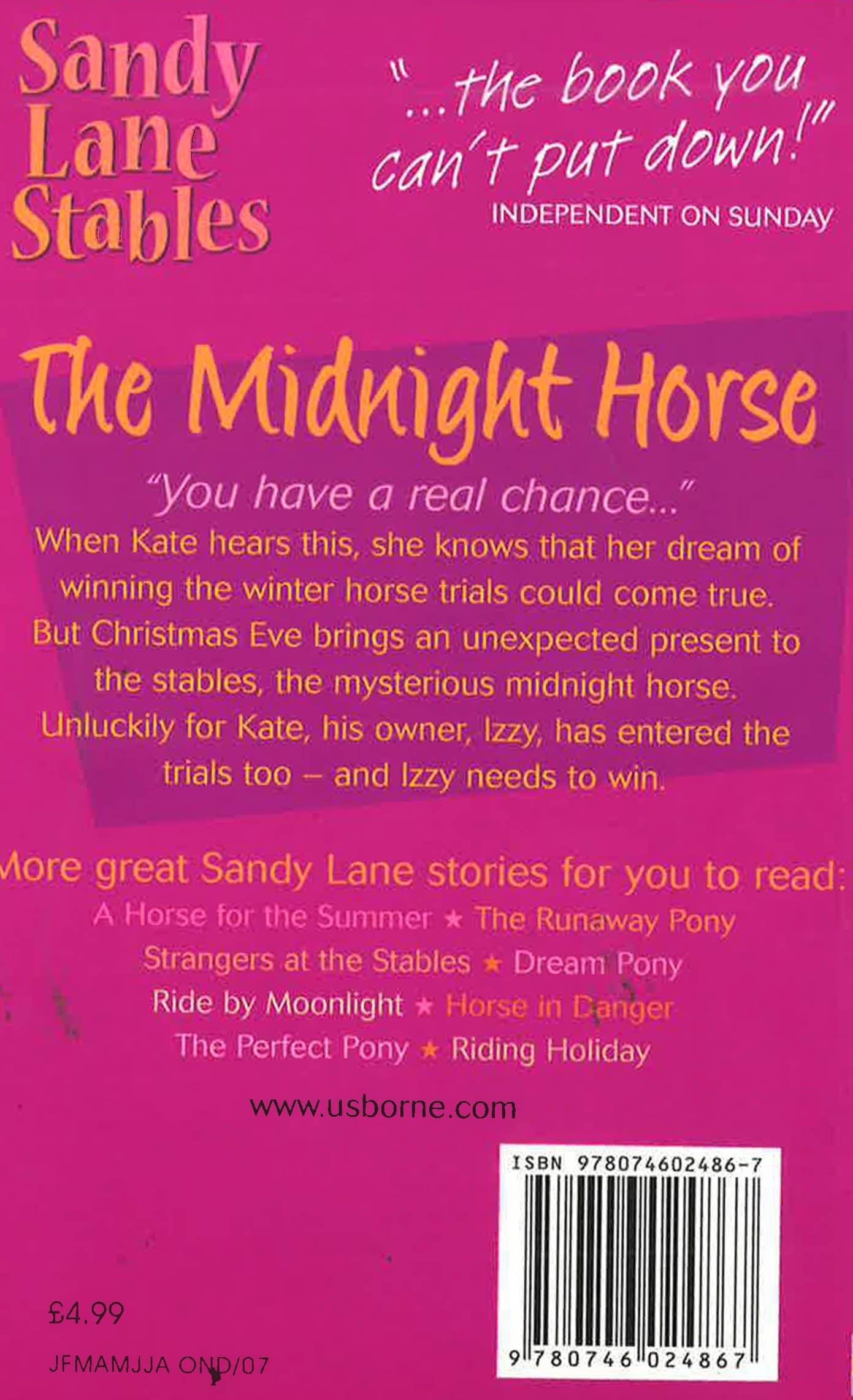 Sandy Lane Stables is a series of full lengt h fiction, based on the people who live or work at the ridin g school. In this story Alex and Kate find a thin, neglected horse at Grange Manor, and decide to nurse it back to healt h. '