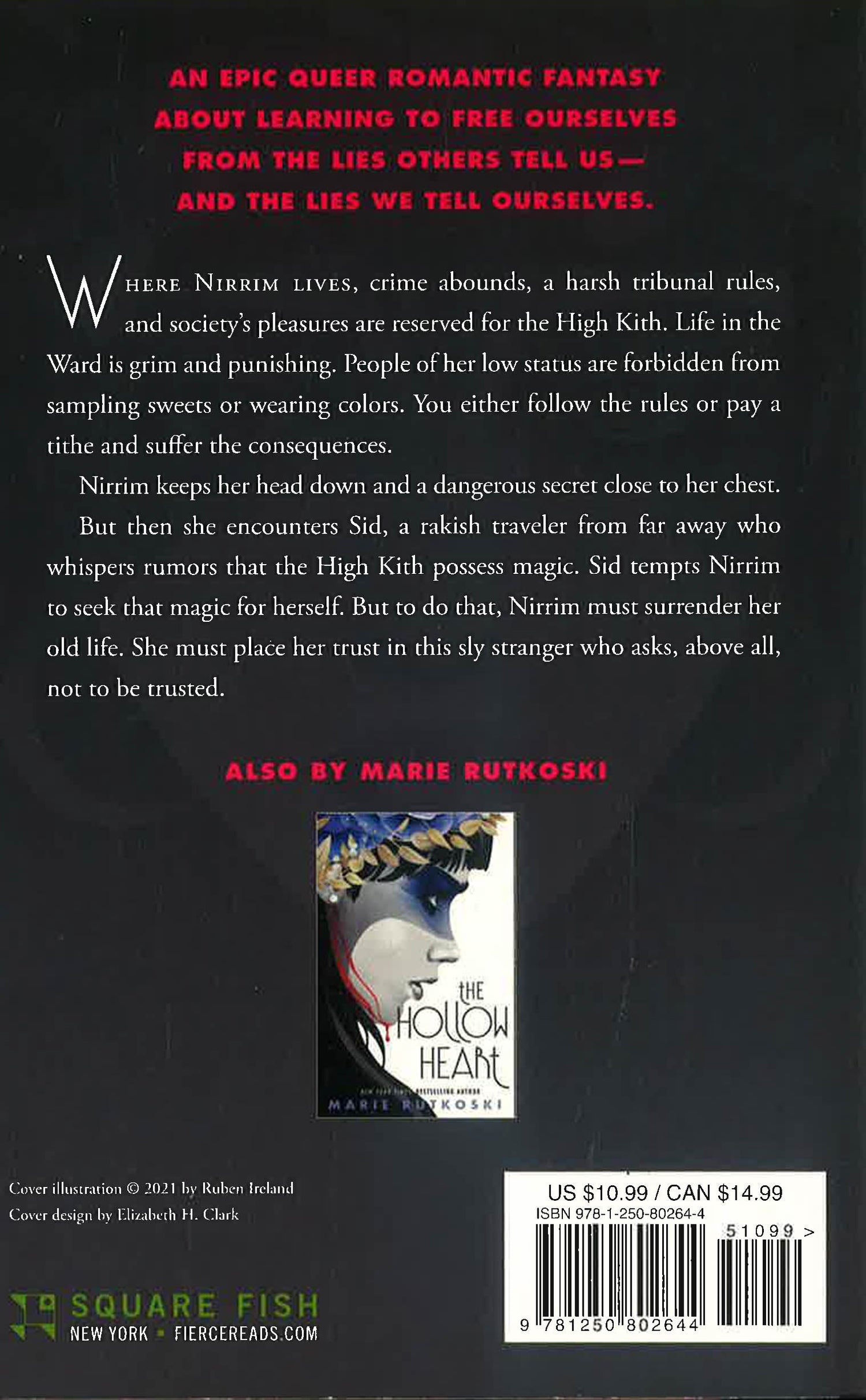 But then she encounters Sid, a rakish traveler from far away, who whispers rumors that the High Kith possess magic. Sid tempts Nirrim to seek that magic for herself. But to do that, Nirrim must surrender her old life. She must place her trust in this sly stranger who asks, above all, not to be trusted.