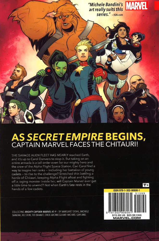 Written by best-selling author Margaret Stohl! As Secret Empire begins, Captain Marvel faces the Chitauri! The savage alien fleet has nearly reached Earth space - and it's up to Carol Danvers to stop it. But taking on an entire armada is a tall order even for our mighty hero and the crew of the Alpha Flight Space Station. Can Carol find a way to inspire her ranks - including her battalion of young cadets - to rise to the challenge of protecting the planet? As Alpha Flight puts their plan into action, an enemy from Carol's past rears its head, threatening to ruin everything!