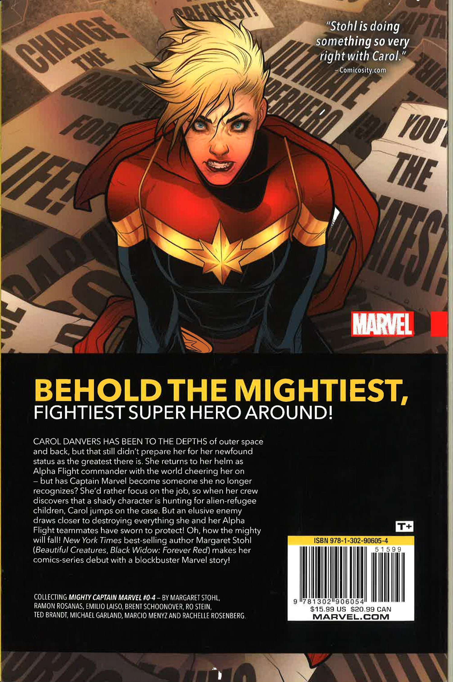 Behold the mightiest, fightiest super hero there is! Captain Marvel returns to her helm as Alpha Flight commander with the world cheering her on. She's the biggest hero in the world - but has Captain Marvel become someone Carol Danvers no longer recognizes? New York Times bestselling author Margaret Stohl (Beautiful Creatures, Black Widow: Forever Red) makes her comics series debut with a blockbuster Marvel story decades in the making!