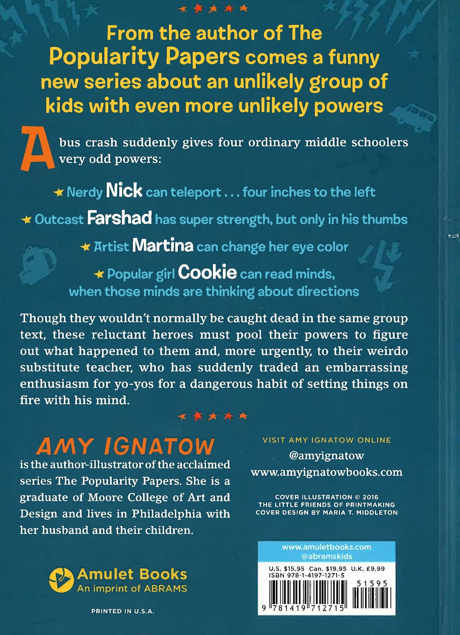What do you get when you mix a sci-fi nerd, a cartoonist, a social outcast, and the most popular girl in school with a mysterious bus crash? Some very specific superpowers: Martina can change her eye colour; Nick can teleport four inches to the left; Farshad can develop super strength, but only in his thumbs; and Cookie can read minds, when those minds are thinking about directions. They are, in short, the just okayish heroes. Starring a diverse group of kids with (very limited) superpowers, this series' multiple narrators make for a quirky, pitch-perfect read that tackles identity and stereotypes. Ignatow's characters have been praised widely, as "very real" by the New York Times and "completely convincing" by the New Yorker.