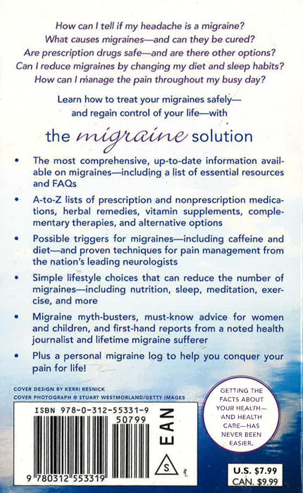 For millions of people, migraine headaches are a debilitating part of every day. As top neurologists specializing in headache pain at Brigham and Women's Hospital and The Faulkner Hospital in Boston, Elizabeth Loder, MD, MPH, and Paul Rizzoli, MD, are at the forefront of new research related to migraine management and treatment. In "The Migraine Solution", they'll provide clear, current, reliable information to meet the unmet needs of the headache patient, while also clarifying some of the 'myths' of headache management. Along with Liz Neporent, seasoned health journalist and lifetime migraine sufferer, they will provide readers with all of the guidance they need to alleviate their migraines for good, including: understanding migraine triggers, self-evaluation questionnaires and symptom-trackers, cheat sheets, wallet cards, and migraine logs; over-the-counter vs. prescription drug treatment, herbal/vitamin treatment and complementary/alternative medicine; lifestyle treatments including diet, exercise, sleep, and meditation; emergency pain management; special circumstances: women and children; and, essential Harvard resources and FAQs.