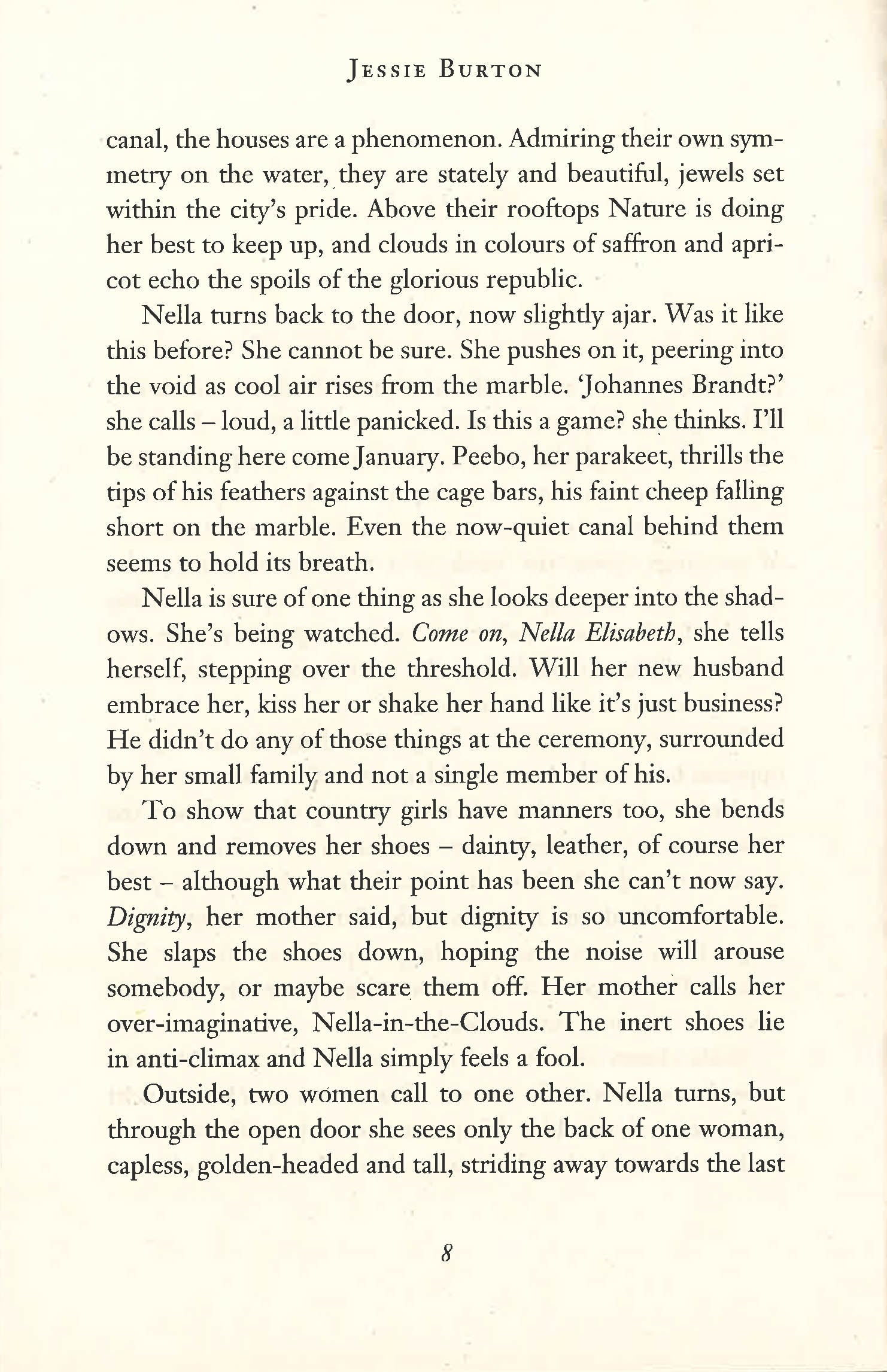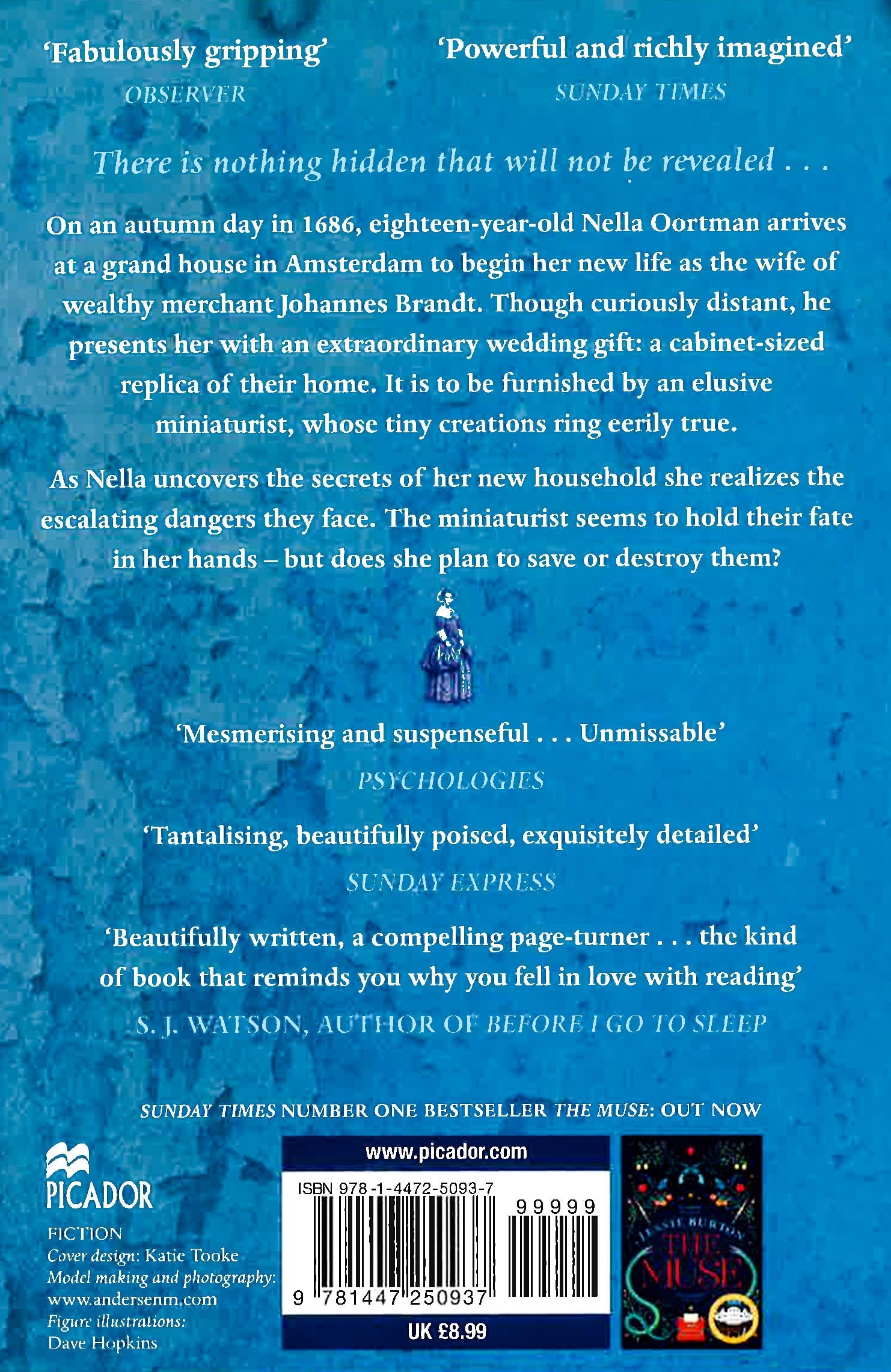 THE NUMBER ONE SUNDAY TIMES BESTSELLER There is nothing hidden that will not be revealed ...On an autumn day in 1686, eighteen-year-old Nella Oortman knocks at the door of a grand house in the wealthiest quarter of Amsterdam. She has come from the country to begin a new life as the wife of illustrious merchant trader Johannes Brandt, but instead she is met by his sharp-tongued sister, Marin. Only later does Johannes appear and present her with an extraordinary wedding gift: a cabinet-sized replica of their home. It is to be furnished by an elusive miniaturist, whose tiny creations mirror their real-life counterparts in unexpected ways ...Nella is at first mystified by the closed world of the Brandt household, but as she uncovers its secrets she realizes the escalating dangers that await them all. Does the miniaturist hold their fate in her hands? And will she be the key to their salvation or the architect of their downfall? Beautiful, intoxicating and filled with heart-pounding suspense, Jessie Burton's magnificent debut novel The Miniaturist is a story of love and obsession, betrayal and retribution, appearance and truth.