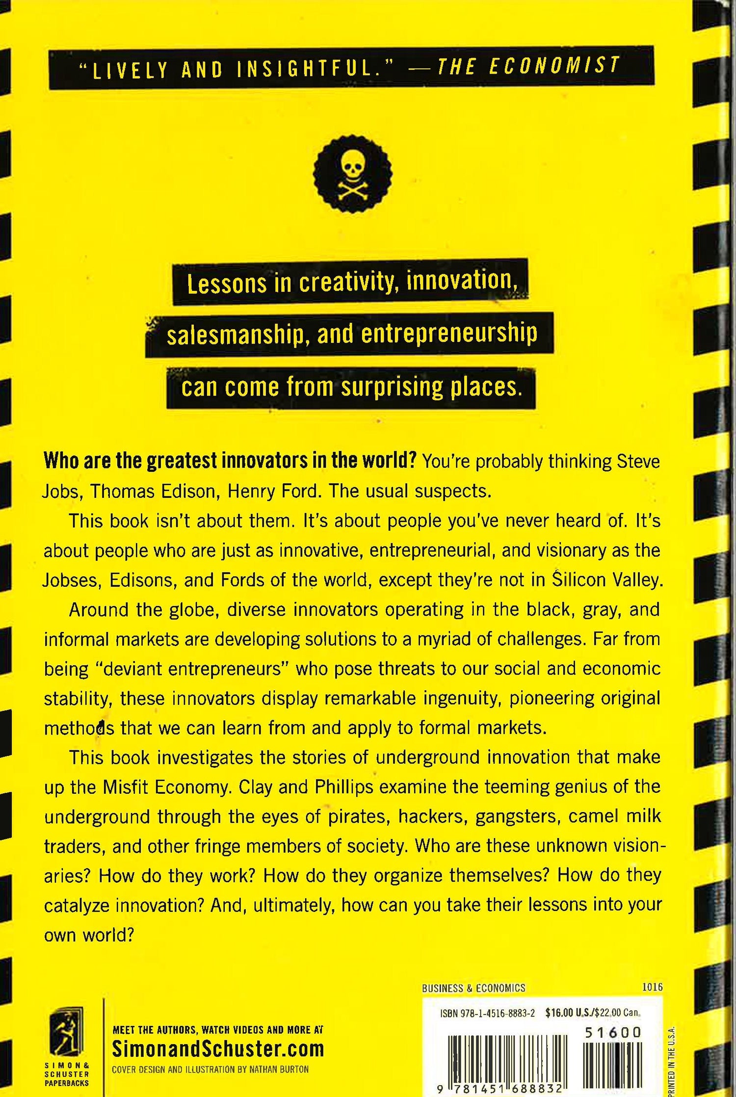 The Misfit Economy is about people who are just as innovative, entrepreneurial, and visionary as the Jobses, Edisons, and Fords of the world, except they're not operating out of Silicon Valley. They're in the street markets of Sao Paulo and Guangzhou, the rubbish dumps of Lagos, the flooded coastal towns of Thailand. They are pirates, slum dwellers, computer hackers, dissidents, and inner city gang members.