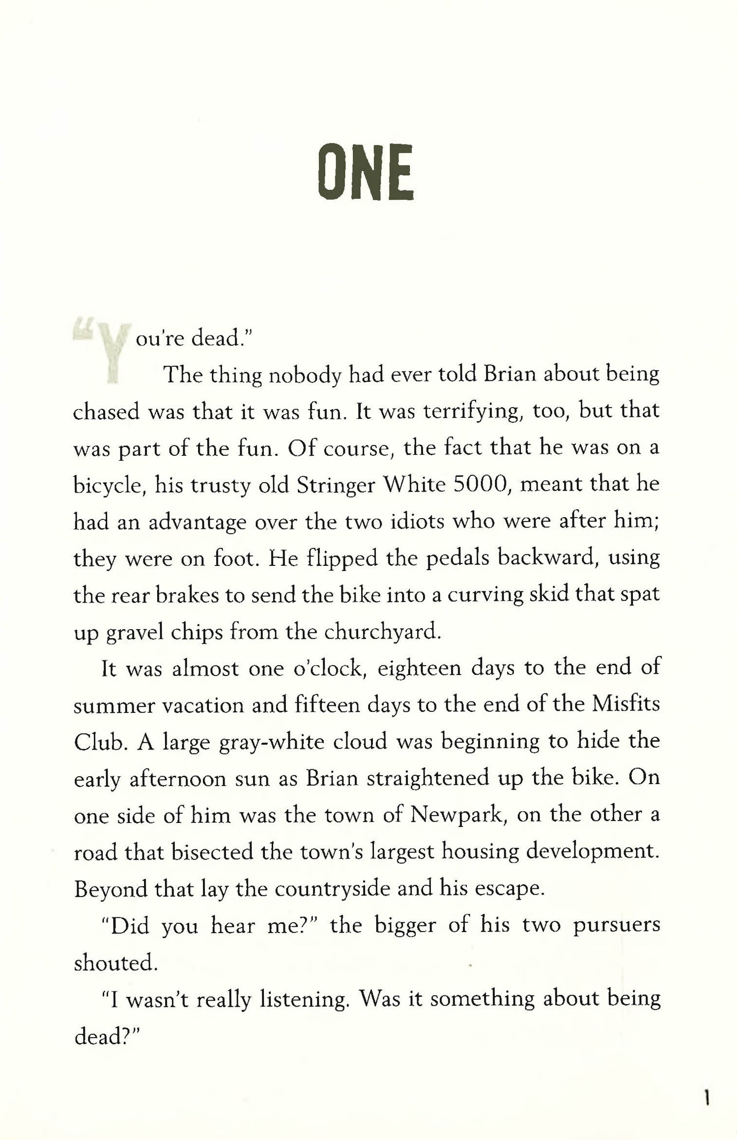 Nothing exciting ever happens in the small town of Newpark, where Brian, Hannah, and twins Chris and Sam live. And when they start their summer vacation, they know it's the end of an era. The Misfits Club - a club they started when they were eight years old - is disbanding, and they still haven't managed to solve any real mysteries.But when they persuade new club member Amelia to go investigate a spooky old house, they unexpectedly discover some stolen goods.Could this be their chance for one last adventure? One thing is for sure, though: Newpark is decidedly more exciting now.