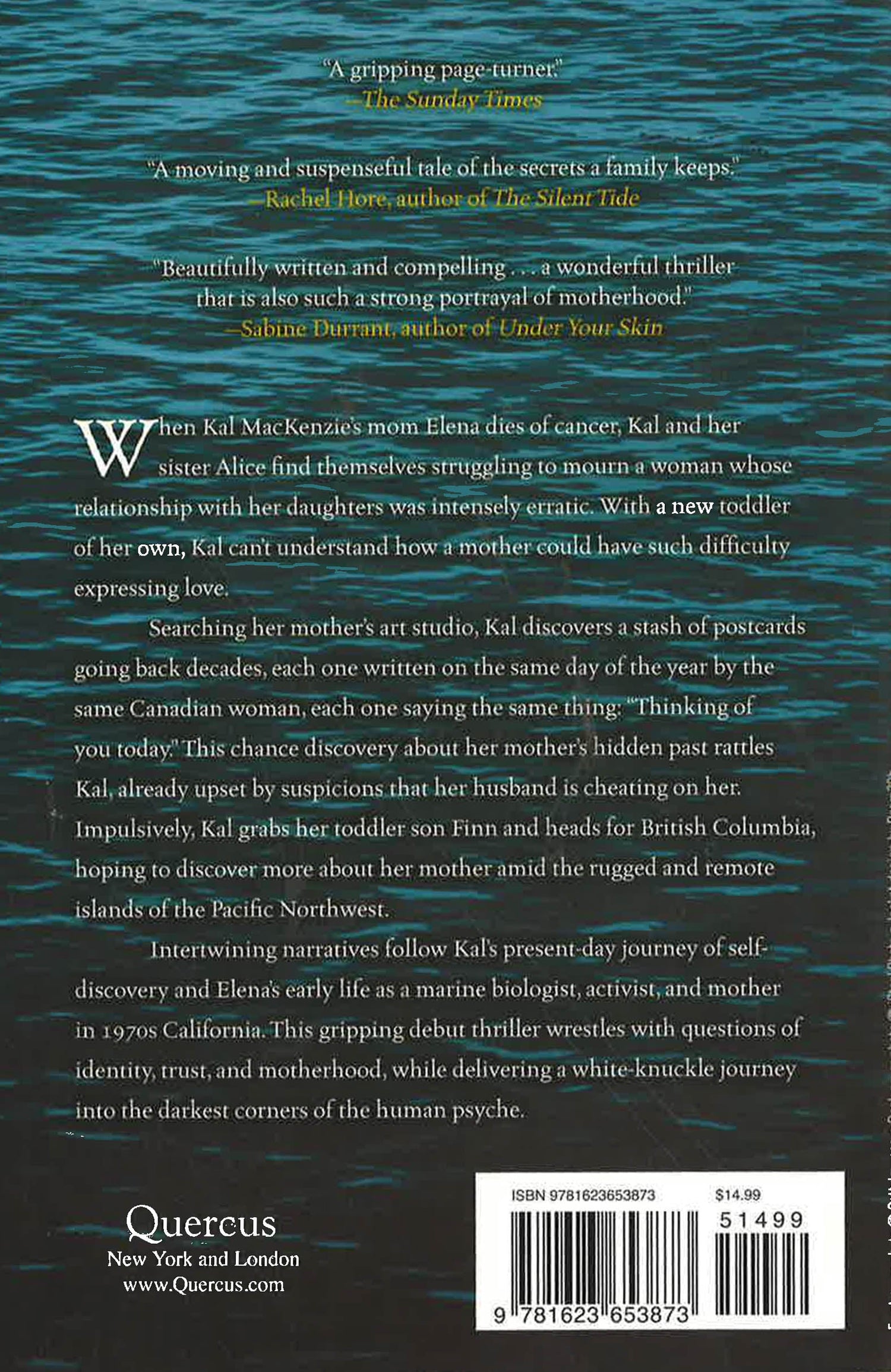 Kal McKenzie was never close to her mother Elena, whose coldness towards her spoiled any chance of a good relationship. When Elena dies of cancer, Kal feels forlorn: how do you mourn a mother who, inexplicably, just didn't seem to love you?While clearing out Elena's art studio, Kal finds a drawer packed with postcards, each bearing an identical one-line message from a Canadian gallery owner named Susannah Gillespie: "Thinking of you." Who is this woman and might she hold the key to her ruined relationship with her mother?Conflicted by her grief and shaken up from recently seeing a covetous text from an old girlfriend on her husband's cell phone, Kal impulsively sets off with her toddler Finn to Susannah's home on a remote British Columbian island, hoping to discover more about her mother amid the rugged and remote islands of the Pacific Northwest.Intertwining narratives follow Kal's present-day journey of self-discovery and Elena's early life as a marine biologist, activist, and mother in 1970s California. This gripping debut thriller wrestles with questions of identity, trust, and motherhood, while delivering a white-knuckle journey into the darkest corners of the human psyche.