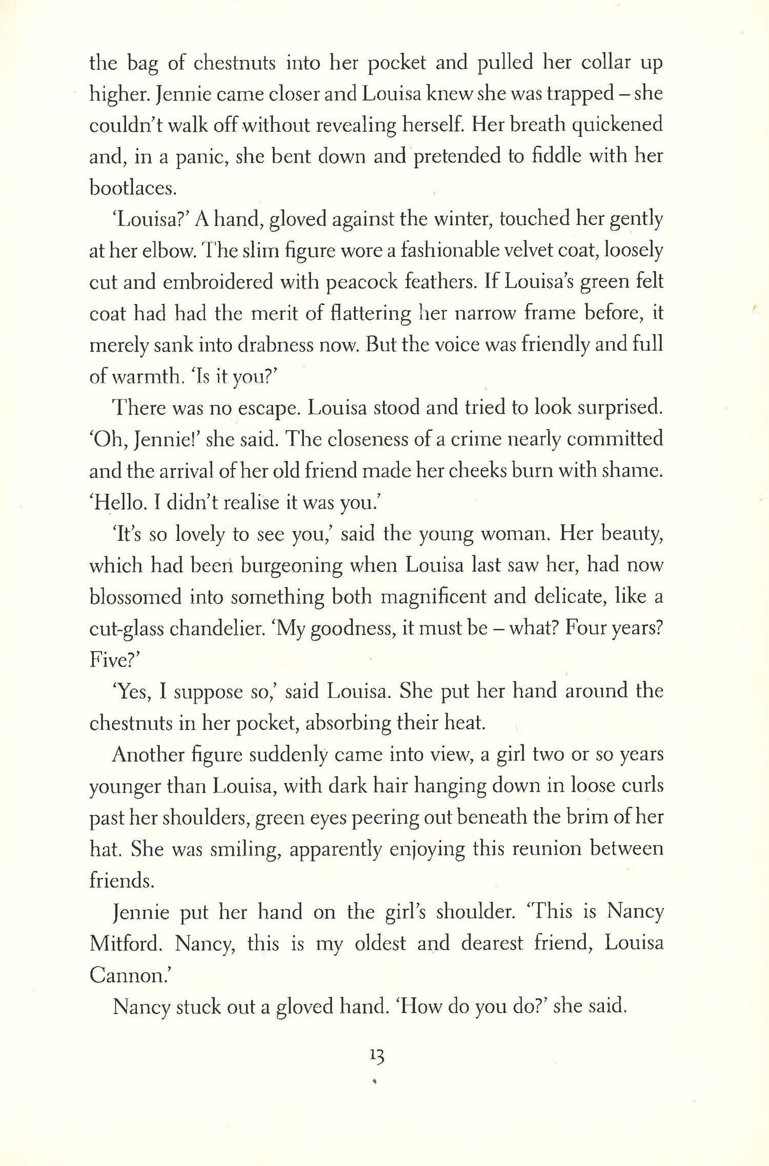 It's 1920, and Louisa Cannon dreams of escaping her life of poverty in London.Louisa's salvation is a position within the Mitford household at Asthall Manor, in the Oxfordshire countryside. There she will become nursemaid, chaperone and confidante to the Mitford sisters, especially sixteen-year-old Nancy, an acerbic, bright young woman in love with stories.But then a nurse - Florence Nightingale Shore, goddaughter of her famous namesake - is killed on a train in broad daylight, and Louisa and Nancy find themselves entangled in the crimes of a murderer who will do anything to hide their secret . . .