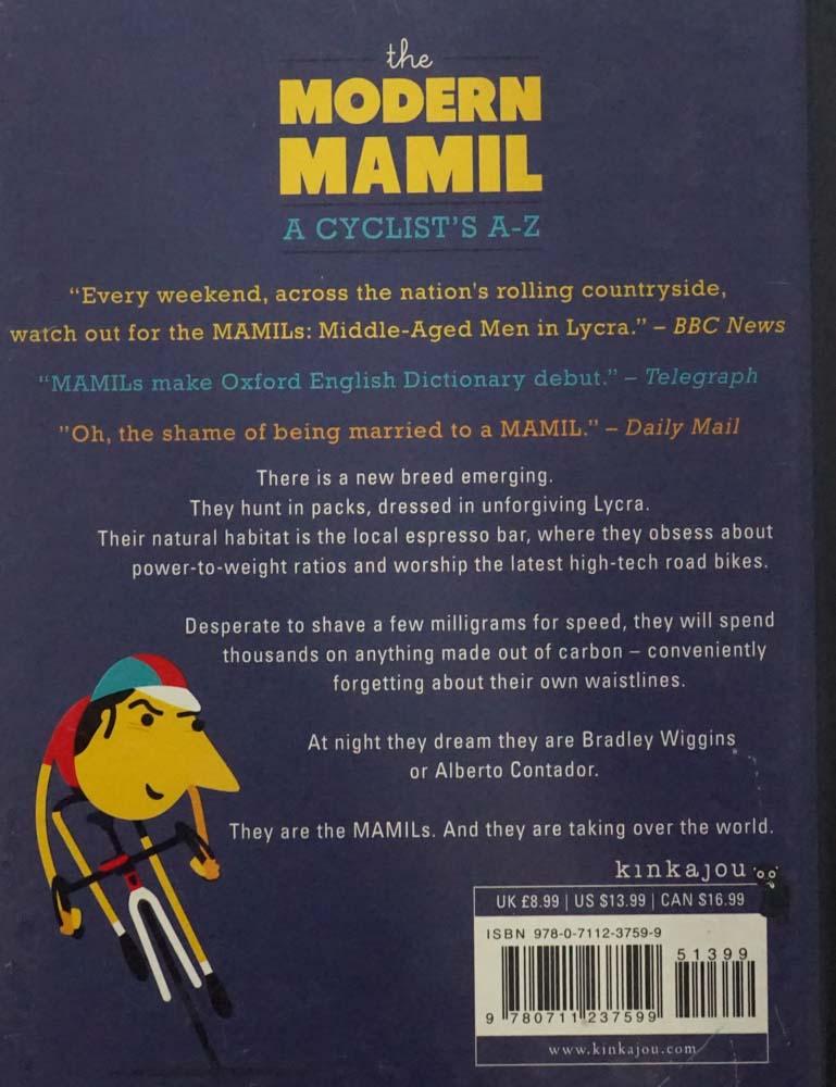 Every weekend, across the nation's rolling countryside, watch out for the Mamils: middle-aged men in lycra' - BBC News 'Mamils make Oxford English Dictionary debut' - Telegraph 'Oh the shame of being married to a MAMIL' - Daily Mail There is a new breed emerging. They hunt in packs, dressed in unforgiving lycra. Their natural habitat is the local espresso bar, where they obsess about power-to-weight ratios and worship the latest high-tech road bikes. Desperate to shave a few milligrams for speed, they will spend thousands on anything made out of carbon - conveniently forgetting about their own waistlines. At night they dream they are Bradley Wiggins or Alberto Contador. They are the Mamils. And they are taking over the world. The Modern MAMIL - a cyclist's A-Z takes a humorous look at cycling and the middle-aged man in lycra.