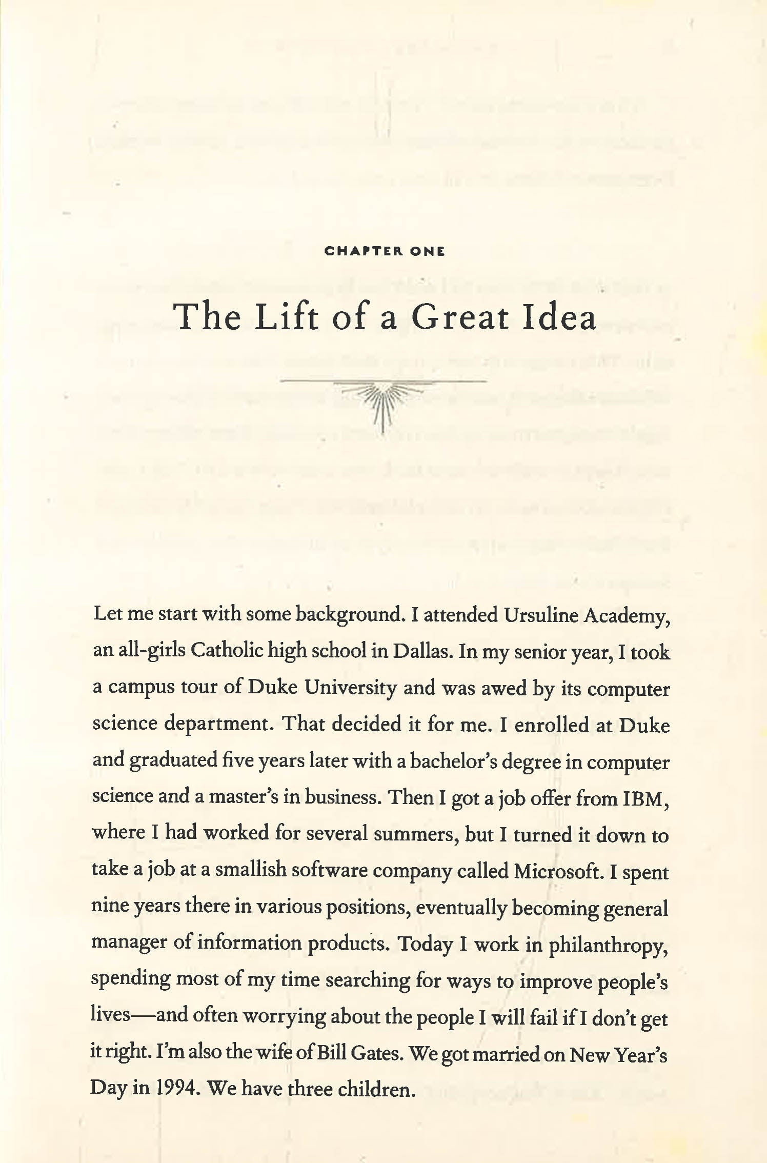 Melinda’s unforgettable narrative is backed by startling data as she presents the issues that most need our attention – from child marriage to lack of access to contraceptives to gender inequity in the workplace. And, for the first time, she writes about her personal life and the road to equality in her own marriage. Throughout, she shows how there has never been more opportunity to change the world – and ourselves.