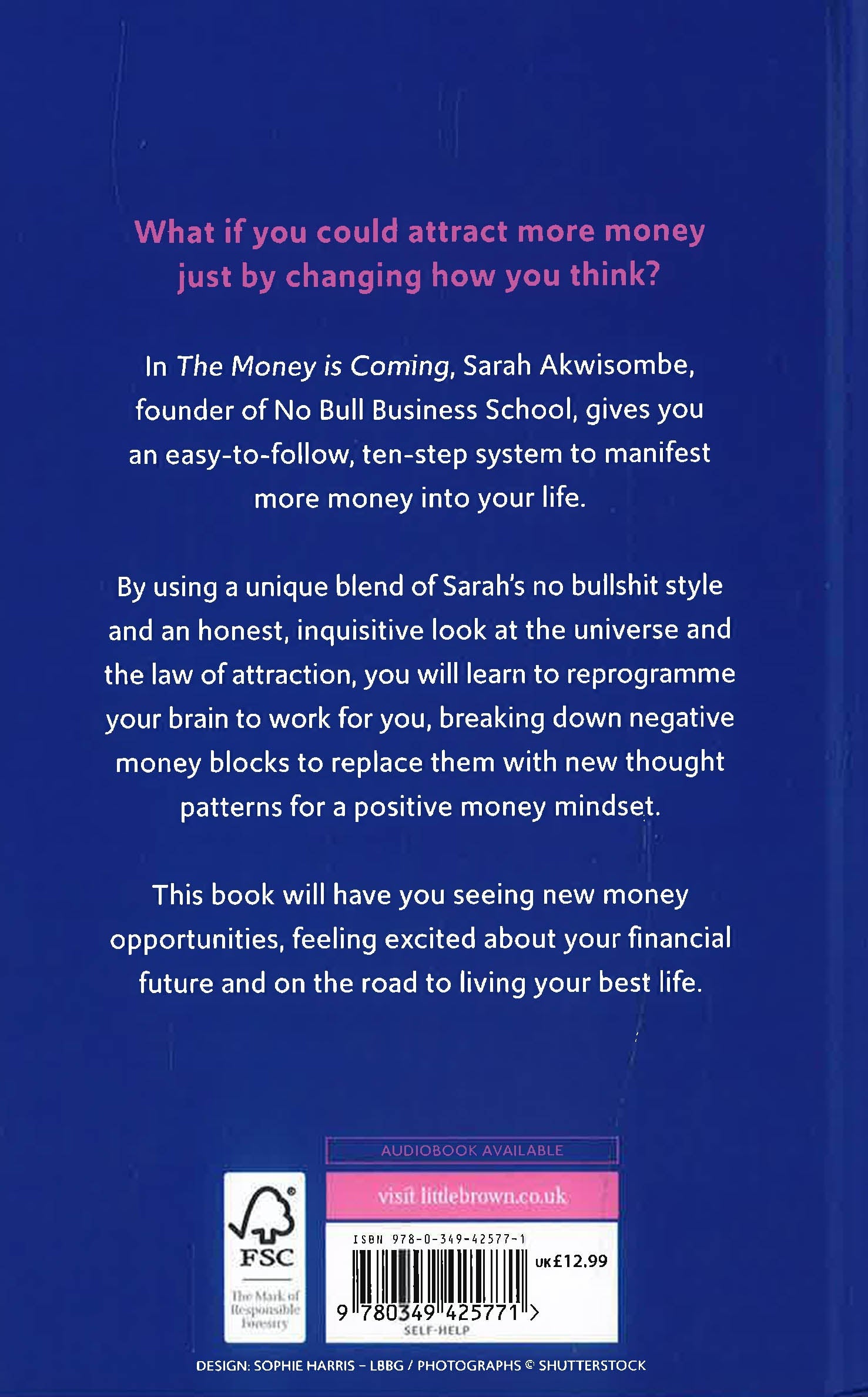 THE SUNDAY TIMES BESTSELLERWhat if you could attract more money just by changing how you think?In The Money Is Coming, Sarah Akwisombe, founder of No Bull Business School, gives you an easy-to-follow, ten step system to manifest more money into your life. By using a unique blend of Sarah's no bullsh*t style and an honest, inquisitive look at the universe and the law of attraction, you will learn to re-programme your brain to work for you, breaking down negative money blocks to replace them with new thought patterns for a positive money mindset. This book will have you seeing new money opportunities, feeling excited about your financial future and on the road to living your best life.