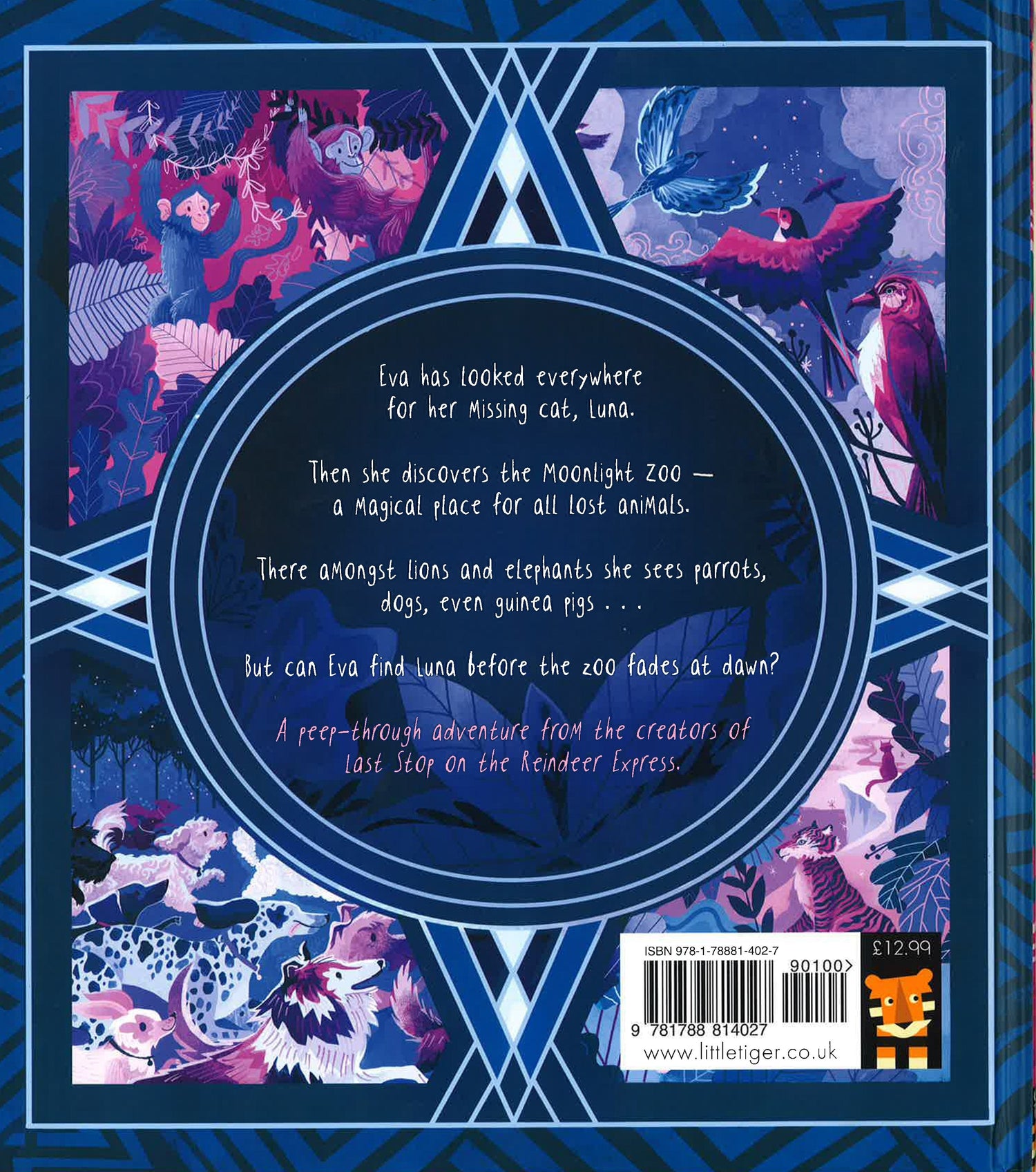 Eva has looked everywhere for her missing cat, Luna. Then she discovers the Moonlight Zoo - a magical place for all lost animals. There amongst lions and elephants she sees parrots, dogs, even guinea pigs... But can Eva find Luna before the zoo fades at dawn? A peep-through adventure from the creators of Last Stop on the Reindeer Express.