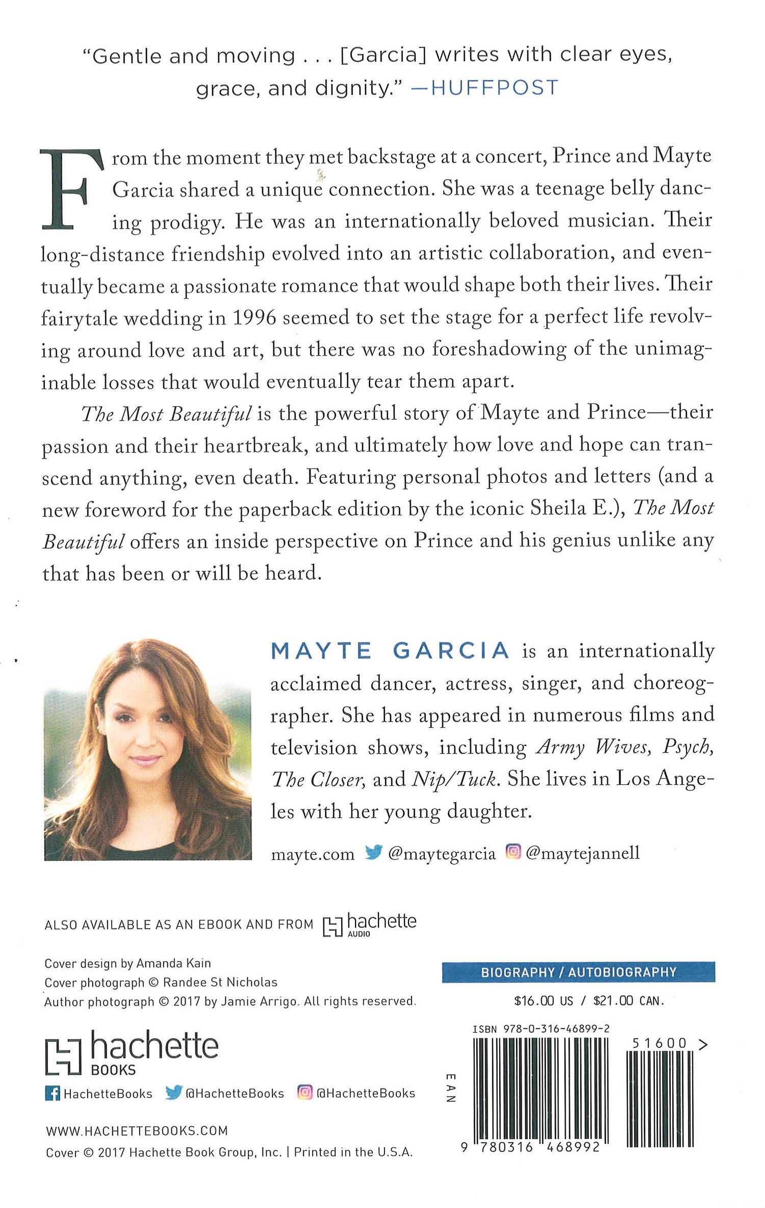 Beloved musician Prince's first wife shares a uniquely intimate, candid, and revelatory look inside the personal and professional life of one of the world's most beloved icons in this critically acclaimed New York Times bestseller. In The Most Beautiful, a title inspired by the hit song Prince wrote about their legendary love story, Mayte Garcia for the first time shares the deeply personal story of their relationship and offers a singular perspective on the music icon and their world together: from their unconventional meeting backstage at a concert (and the long-distance romance that followed), to their fairy-tale wedding (and their groundbreaking artistic partnership), to the devastating losses that ultimately dissolved their romantic relationship for good. Throughout it all, they shared a bond more intimate than any other in Prince's life. No one else can tell this story or can provide a deeper, more nuanced portrait of Prince--both the famously private man and the pioneering, beloved artist--than Mayte, his partner during some of the most pivotal personal and professional years of his career. Featuring a new introduction by the celebrated Sheila E., The Most Beautiful is a book that will be returned to for decades, as Prince's music lives on with generations to come.