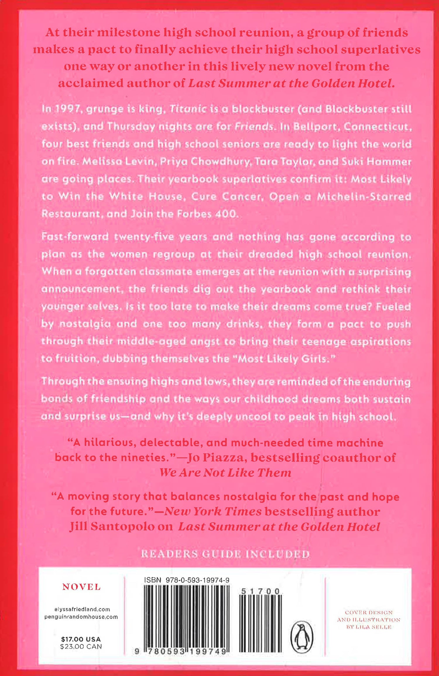 In 1997, grunge is king, Titanic is a blockbuster (and Blockbuster still exists), and Thursday nights are for Friends. In Bellport, Connecticut, four best friends and high school seniors are ready to light the world on fire. Melissa Levin, Priya Chowdhury, Tara Taylor, and Suki Hammer are going places. Their yearbook superlatives confirm it: Most Likely to Win the White House, Cure Cancer, Open a Michelin-Starred Restaurant, and Join the Forbes 400.