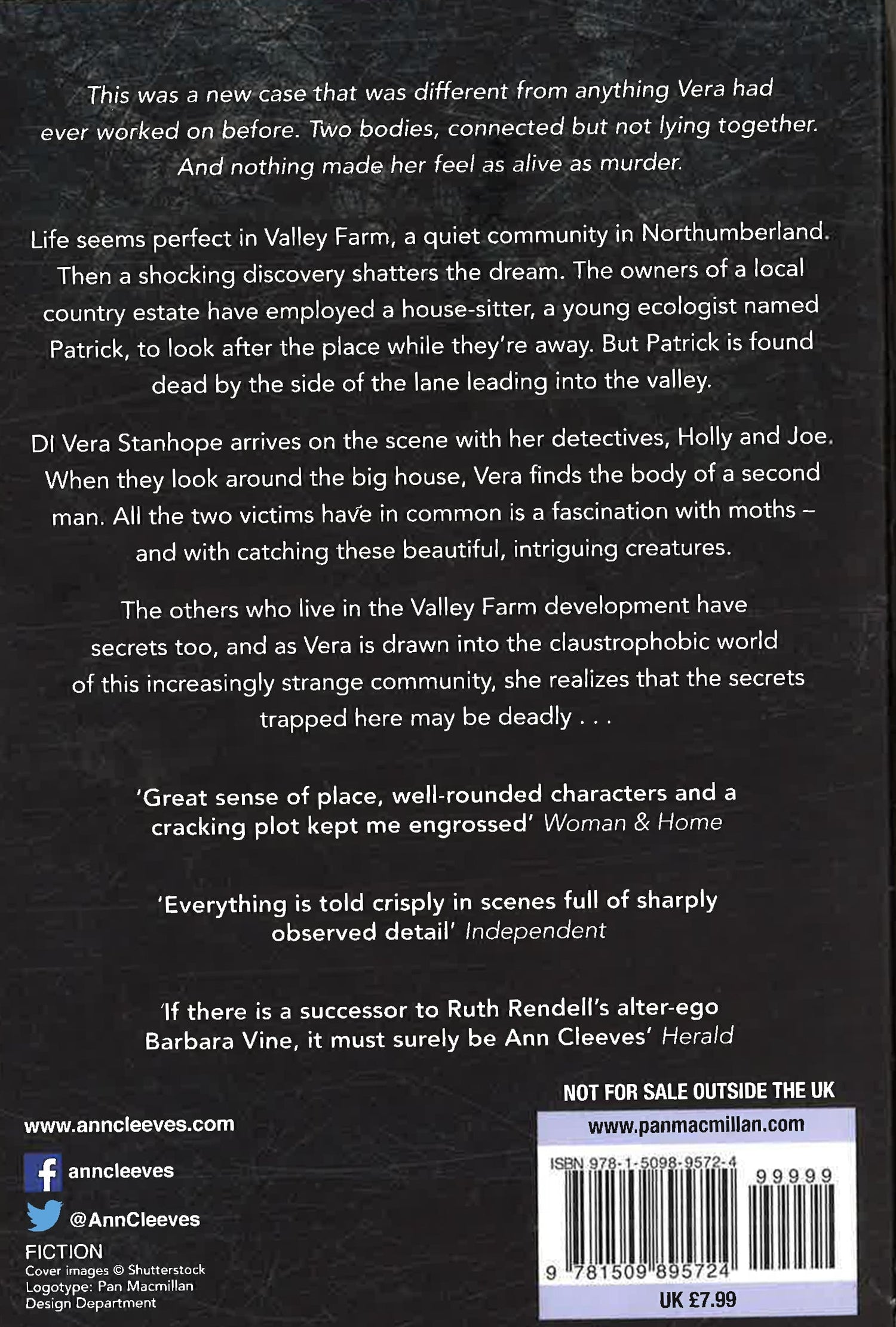 *Winner of the 2017 Crime Writers' Association Diamond Dagger* The Moth Catcher is the seventh book in Ann Cleeves' Vera Stanhope series - now the major ITV detective drama Vera, starring Brenda Blethyn. 'This case was different from anything Vera had ever worked before. Two bodies, connected but not lying together. And nothing made her feel as alive as murder.' Life seems perfect in Valley Farm, a quiet community in Northumberland. Then a shocking discovery shatters the silence. The owners of a big country house have employed a house-sitter, a young ecologist named Patrick, to look after the place while they're away. But Patrick is found dead by the side of the lane into the valley - a beautiful, lonely place to die. DI Vera Stanhope arrives on the scene, with her detectives Holly and Joe. When they look round the attic of the big house - where Patrick has a flat - she finds the body of a second man. All the two victims have in common is a fascination with moths - catching these beautiful, rare creatures. Those who live in the Valley Farm development have secrets too: Annie and Sam's daughter is due to be released from prison any day; Nigel watches, silently, every day, from his window. As Vera is drawn into the claustrophobic world of this increasingly strange community, she realizes that there may be deadly secrets trapped here . . . Enjoy more of Vera Stanhope's investigations with The Crow Trap, Telling Tales, Hidden Depths, Silent Voices, The Glass Room, Harbour Street, and The Seagull.