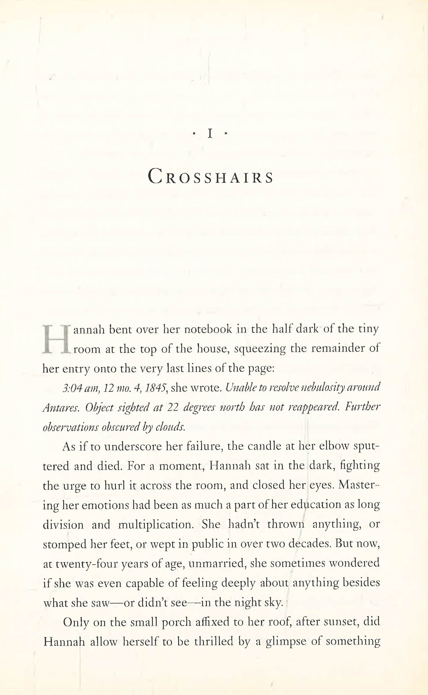 It is 1845, and Hannah Gardner Price has lived all twenty-four years of her life according to the principles of the Nantucket Quaker community in which she was raised, where simplicity and restraint are valued above all, and a woman's path is expected to lead to marriage and motherhood. But up on the rooftop each night, Hannah pursues a very different--and elusive--goal: discovering a comet and thereby winning a gold medal awarded by the King of Denmark, something unheard of for a woman.