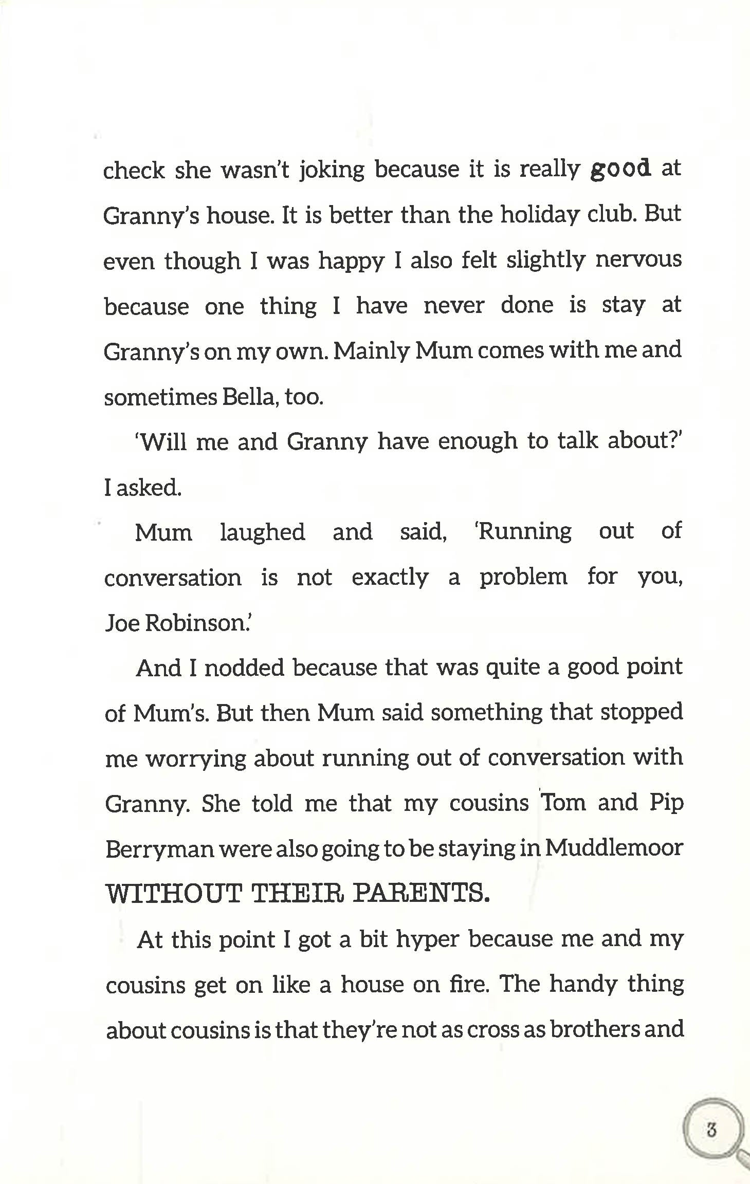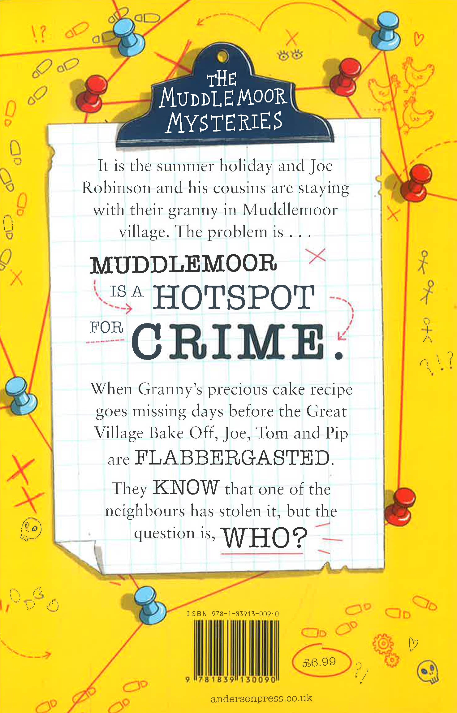 It is the summer holiday and Joe Robinson and his cousins are staying with their granny in Muddlemoor village. The problem is . . . Muddlemoor is a hotspot for crime. When Granny’s precious cake recipe goes missing days before the Great Village Bake Off, Joe, Tom and Pip are FLABBERGASTED. They KNOW that one of the neighbours has stolen it but the question is, WHO?
