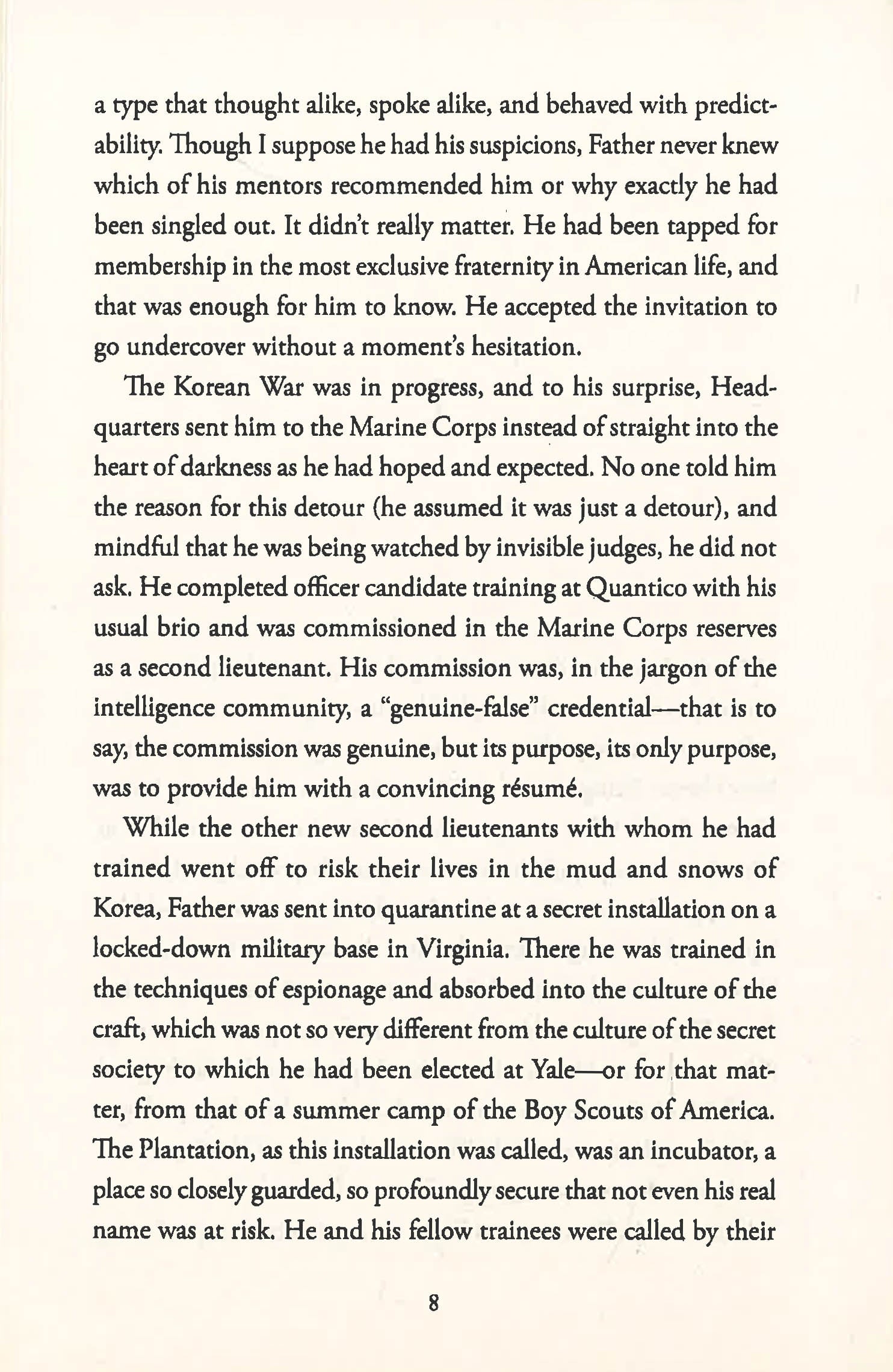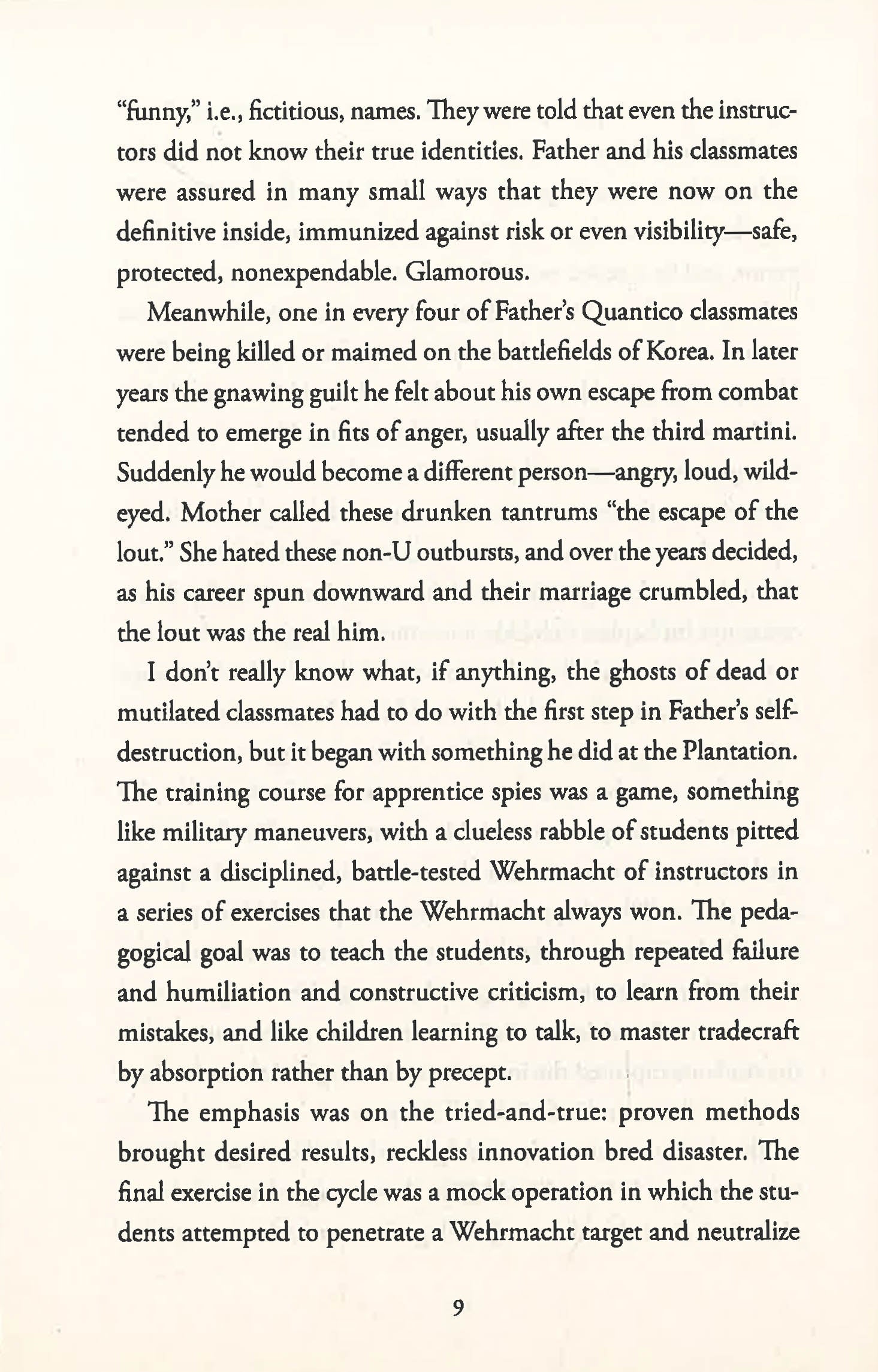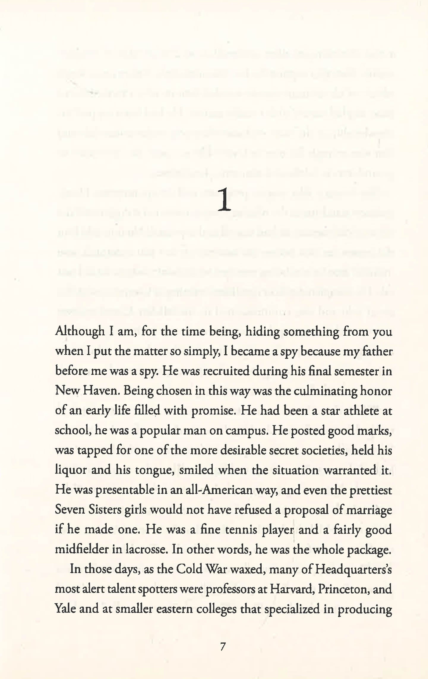 I became a spy because my father before me was a spy. Although I am, for the time being, hiding something from you.