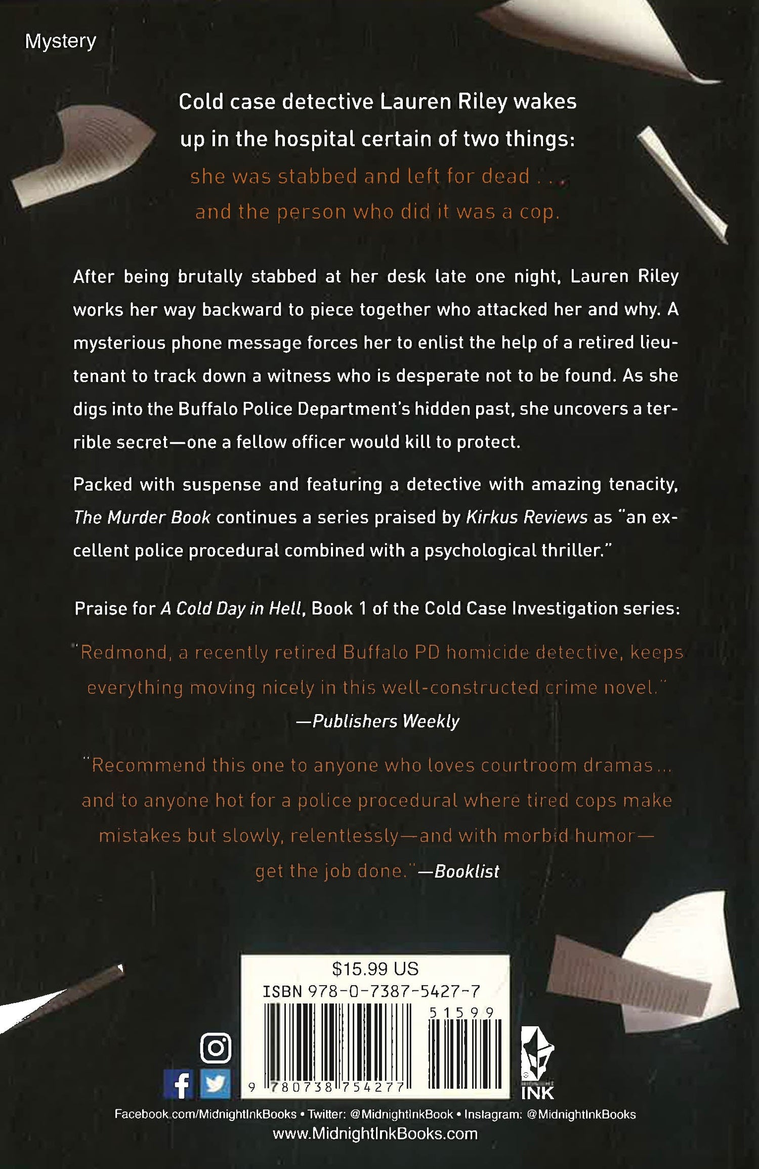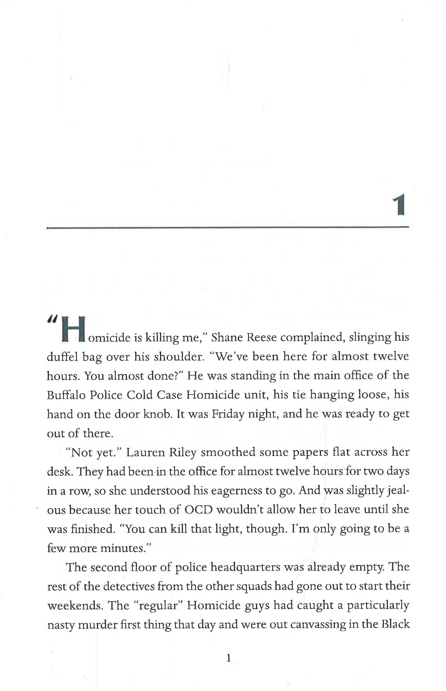 After being brutally stabbed at her desk late one night, Lauren Riley works her way backwards through the haze to piece together who attacked her and why. A mysterious phone message forces her to enlist the help of a retired lieutenant to track down a witness who is desperate not to be found. As she digs into the Buffalo Police Department's hidden past she uncovers a terrible secret, one a fellow officer would kill to protect.