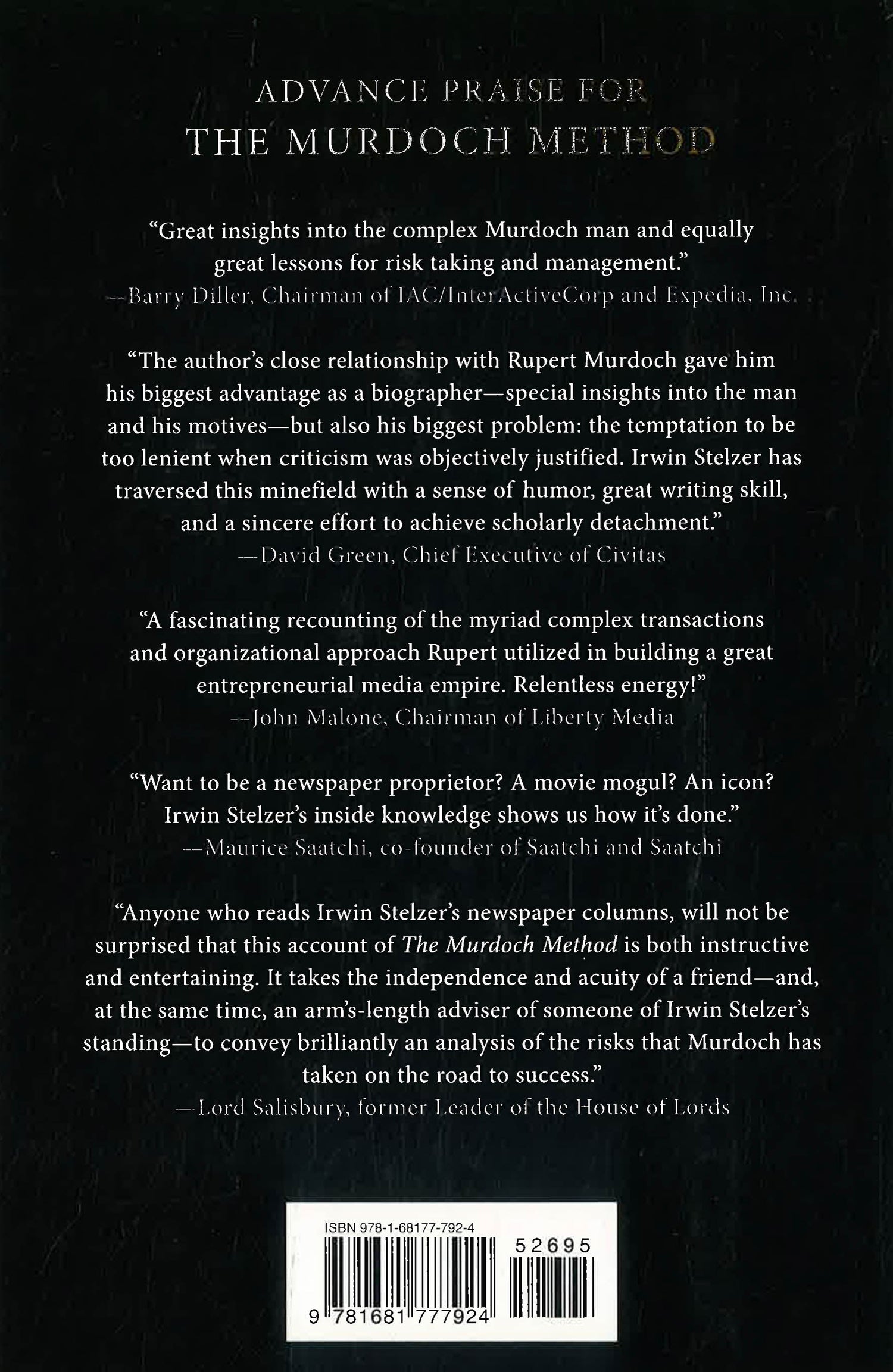 After having worked closely with the legendary media titan for thirty-five years, Irwin Stelzer is uniquely positioned to evaluate Murdoch's media empire through periods of rapid expansion and acquisitions, times of financial and regulatory stress, and political battles in Britain and America. Stelzer helped plan important company conclaves and assisted with Murdoch's speeches, at least one of which was responsible for having News Corp barred by the Chinese regime from doing business in that country.