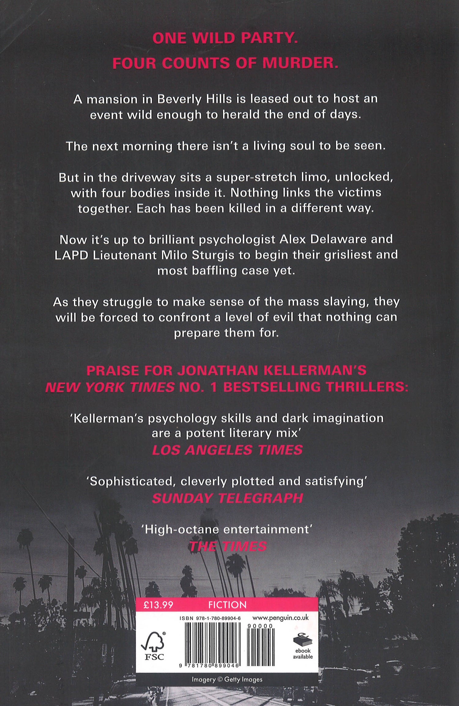 __________________________ONE WILD PARTY. FOUR COUNTS OF MURDER.A mansion in Beverly Hills is leased out to host an event wild enough to herald the end of days.The next day there isn't a living soul to be seen.But in the driveway sits a super-stretch limo, unlocked, with four bodies inside it. Nothing links the victims together. Each has been killed in a different way.Now it's up to brilliant psychologist Alex Delware and LAPD Lieutenant Milo Sturgis to begin their grisliest and most baffling case yet.As they struggle to make sense of the mass slaying, they will be forced to confront a level of evil that nothing can prepare them for.